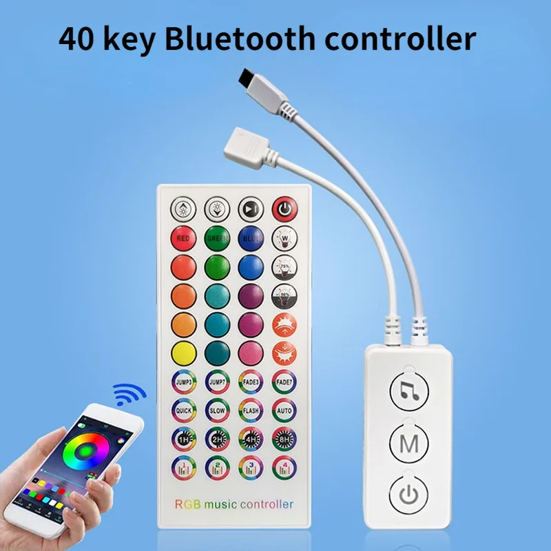 Controlador Bluetooth con mando a distancia IR de 40 teclas para tira LED de 5-24V, 5050 luces LED, micrófono de música, dispositivo inteligente para retroiluminación de fiesta