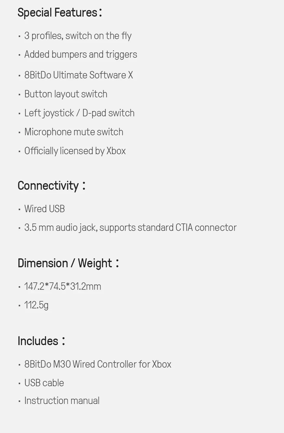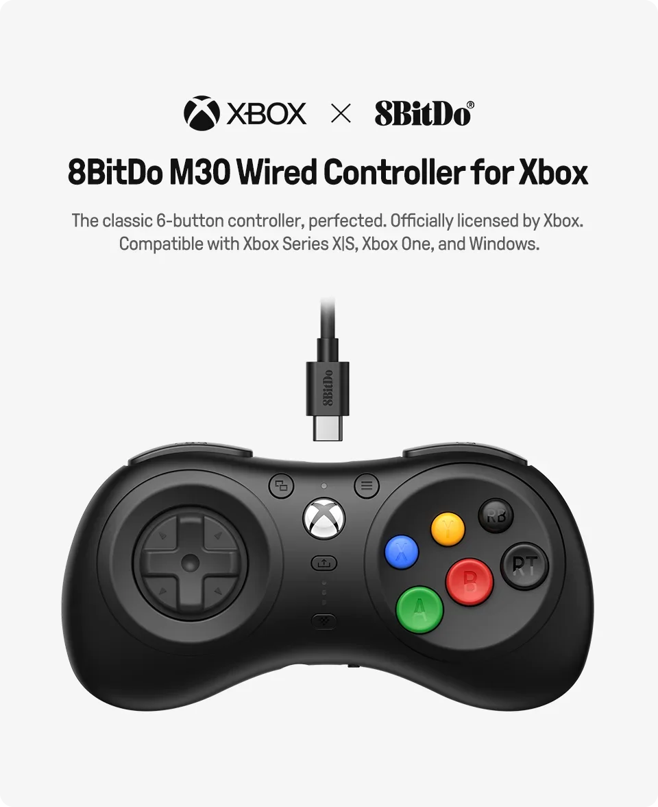 Comprar Controlador con cable 8BitDo M30 para Xbox Series X/S, Xbox One y Windows con accesorios de mando de 6 botones