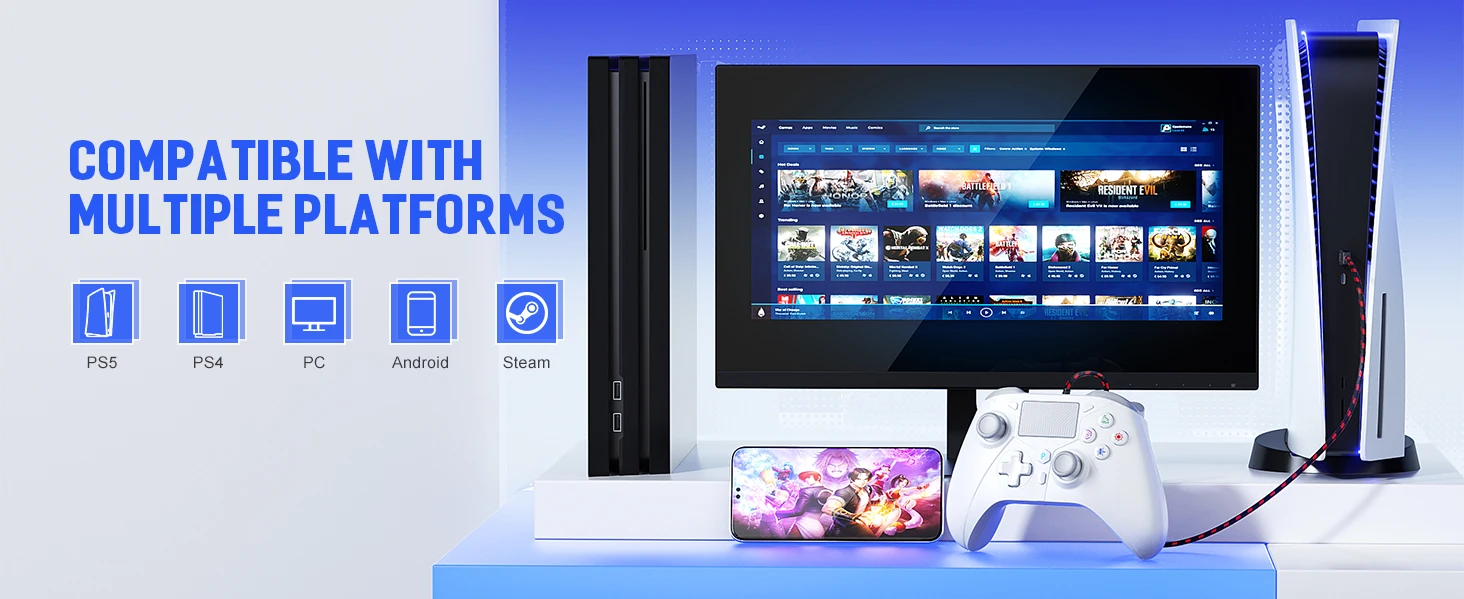 El controlador también admite el reconocimiento automático multiplataforma de las funciones PS5, PS4, PC y PC360.