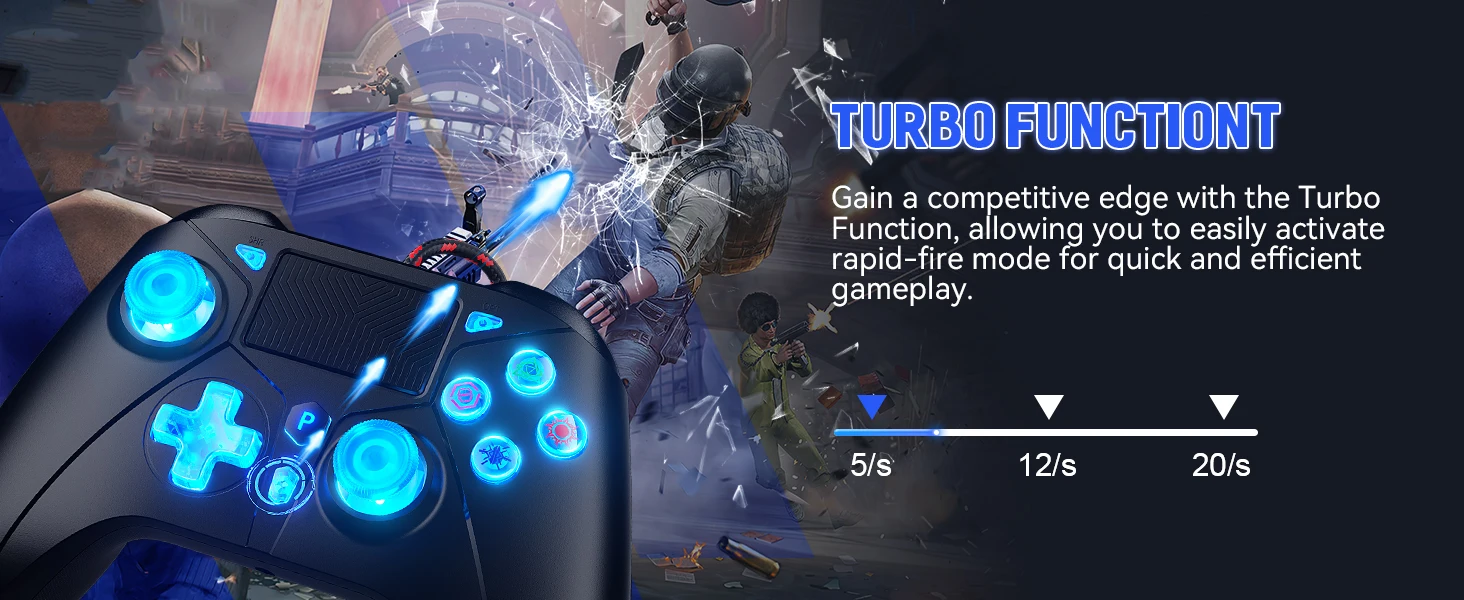 Obtenga una ventaja competitiva con la función Turbo, que le permite activar fácilmente el modo de disparo rápido para un juego rápido y eficiente.