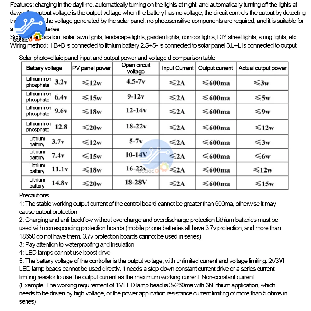 3: La batería debe estar equipada con una placa protectora, y el voltaje de la batería debe coincidir con el voltaje de circuito abierto del panel solar