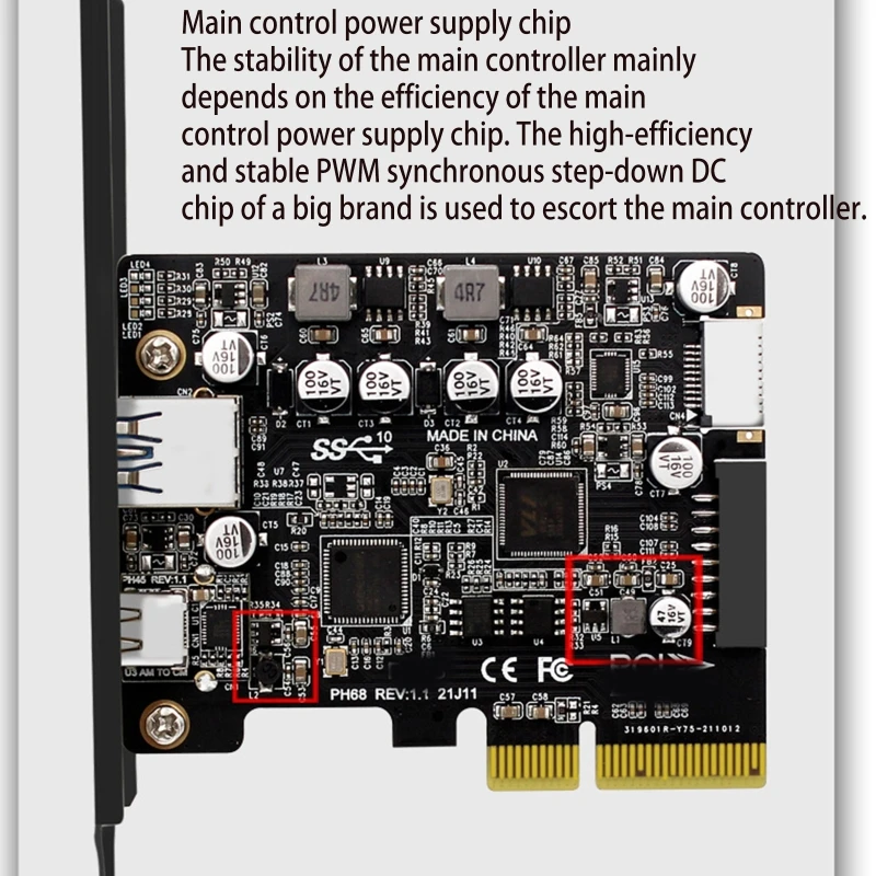 Comprar Controlador de carga rápida PCIE 3,0 a USB 3,2 Gen2 tipo-c 10gbps, USB-C de transferencia de datos, tarjeta PCI-E tipo E 19P20P
