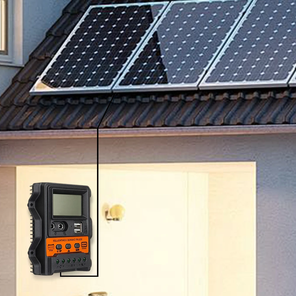 2.Salida USB dual:Equipado con dos puertos USB que brindan salida de 5 V/2,5 A (máx.), este controlador PWM regulador solar le permite cargar sus dispositivos cómodamente en cualquier momento y en cualquier lugar.