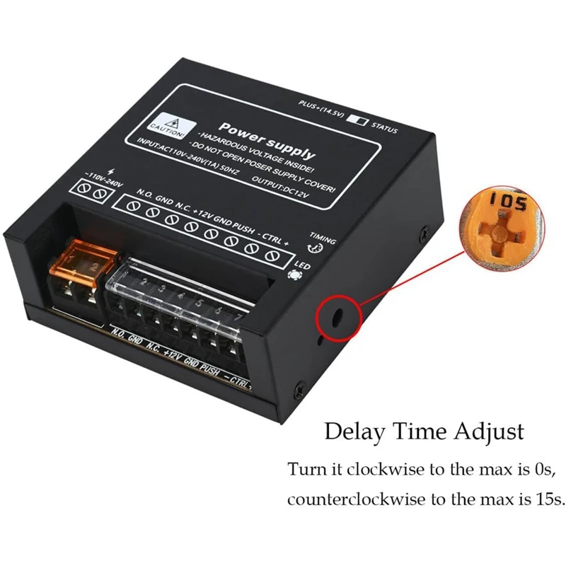 El tiempo de retardo es ajustable y el tiempo de bloqueo es ajustable de 0 a 15 segundos.