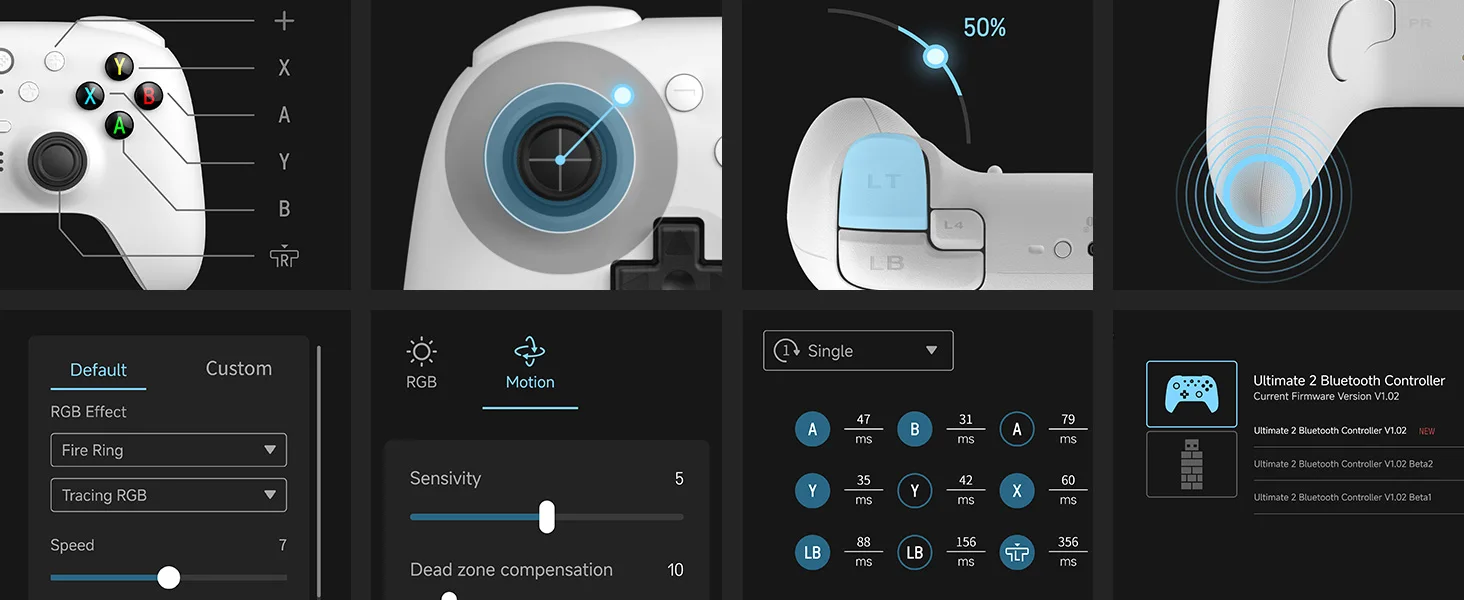 Ultimate Software le brinda control de élite sobre cada pieza de su controlador Personalice el mapeo de los botones, ajuste el joystick y la sensibilidad del disparo, controle de vibración y cree macros con cualquier combinación de botones. Cree perfiles de controlador y cambie entre ellos en cualquier momento con el interruptor de perfil personalizado.