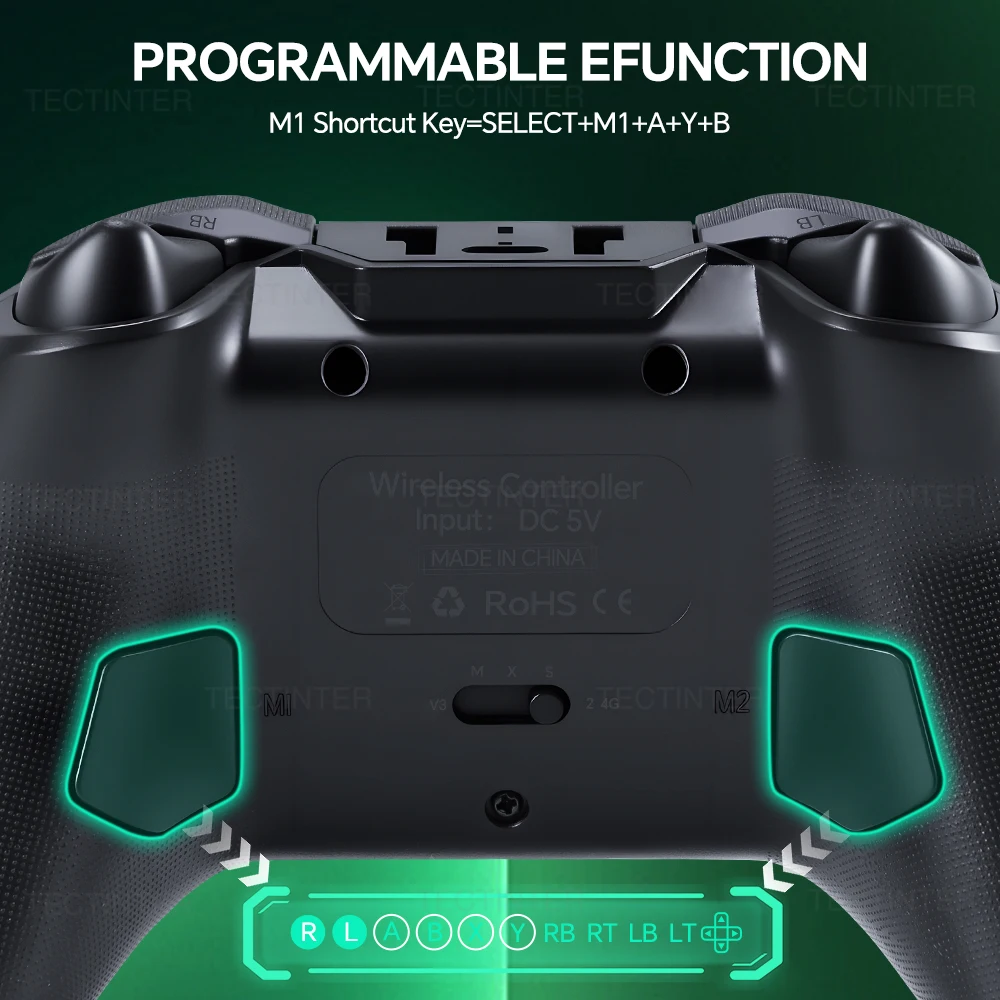 El controlador Bluetooth G6 cuenta con botones M1/M2 programables, lo que permite a los jugadores grabar libremente secuencias combinadas personalizadas.Simplemente mantenga presionado el botón SELECT y toque M1 para registrar comandos complejos (por ejemplo, A+B+X+Y), lo que permite la activación de habilidades con un solo toque.Obtenga una ventaja en el juego competitivo con acciones precisas e instantáneas.