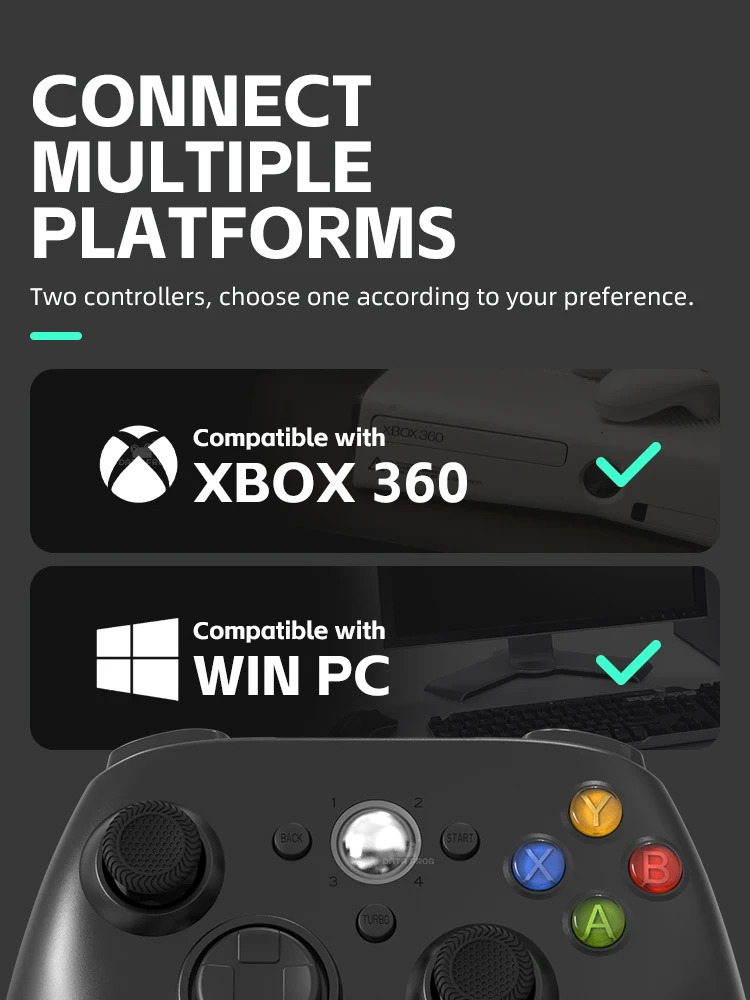 • Compatible con Xbox 360/360 Slim y PC Window :Este GamePad es compatible con Xbox 360 y Xbox 360 Slim, así como con ventanas de PC, lo que lo convierte en una opción versátil para todas sus necesidades de juego.