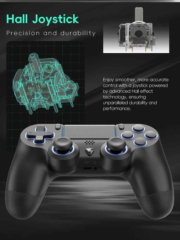 Joystick de efecto Hall para mayor precisión: disfrute de un control más suave y preciso con un joystick alimentado por tecnología avanzada de efecto Hall, lo que garantiza una durabilidad y un rendimiento incomparables.