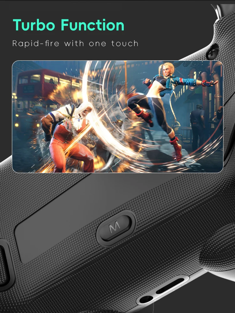 Función Turbo para Fuego Rápido: Domina juegos de ritmo rápido con la función Turbo, brindando capacidades consistentes de disparo rápido para disfrutar de una jugabilidad llena de acción.
