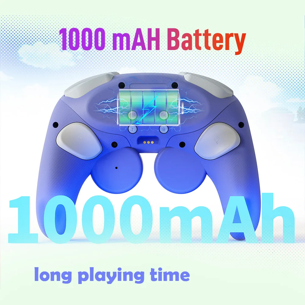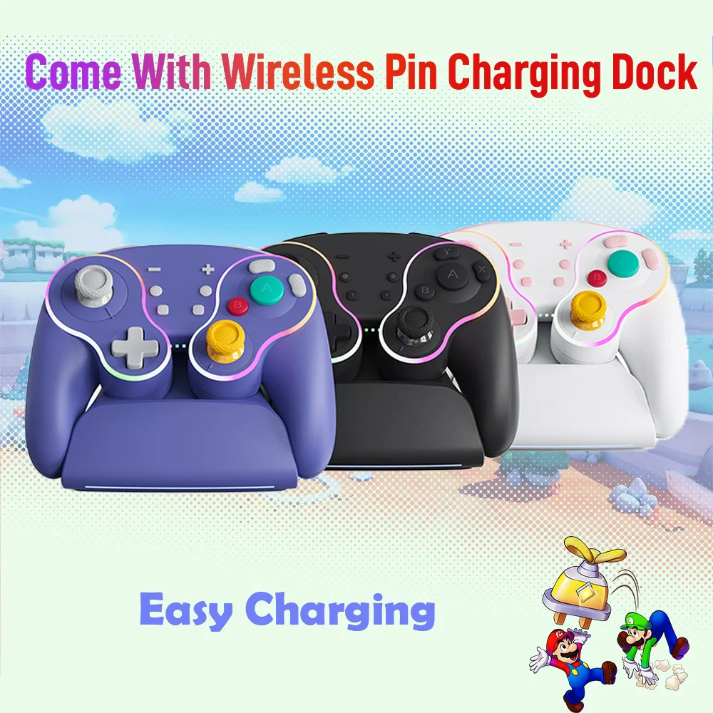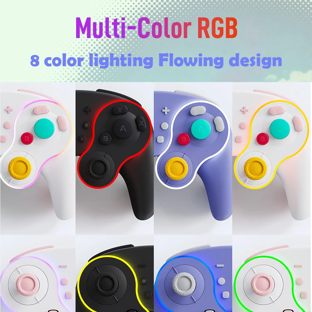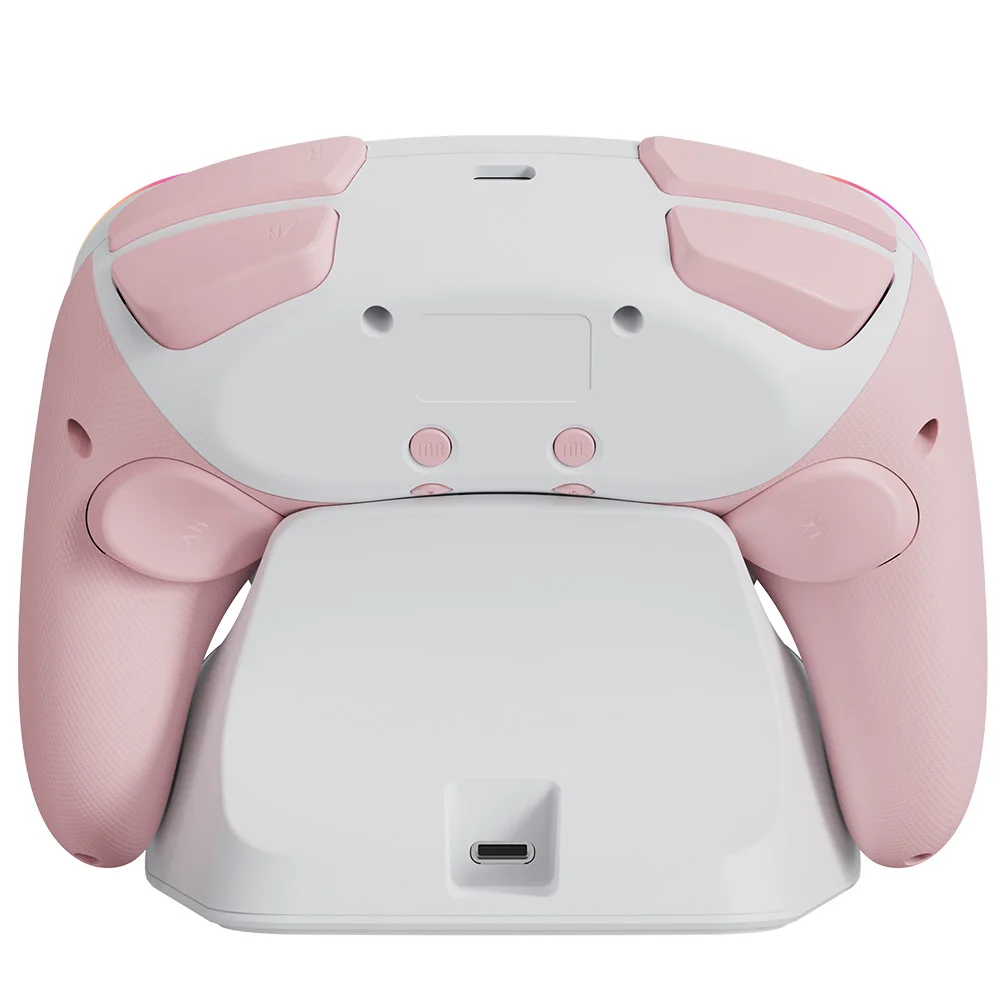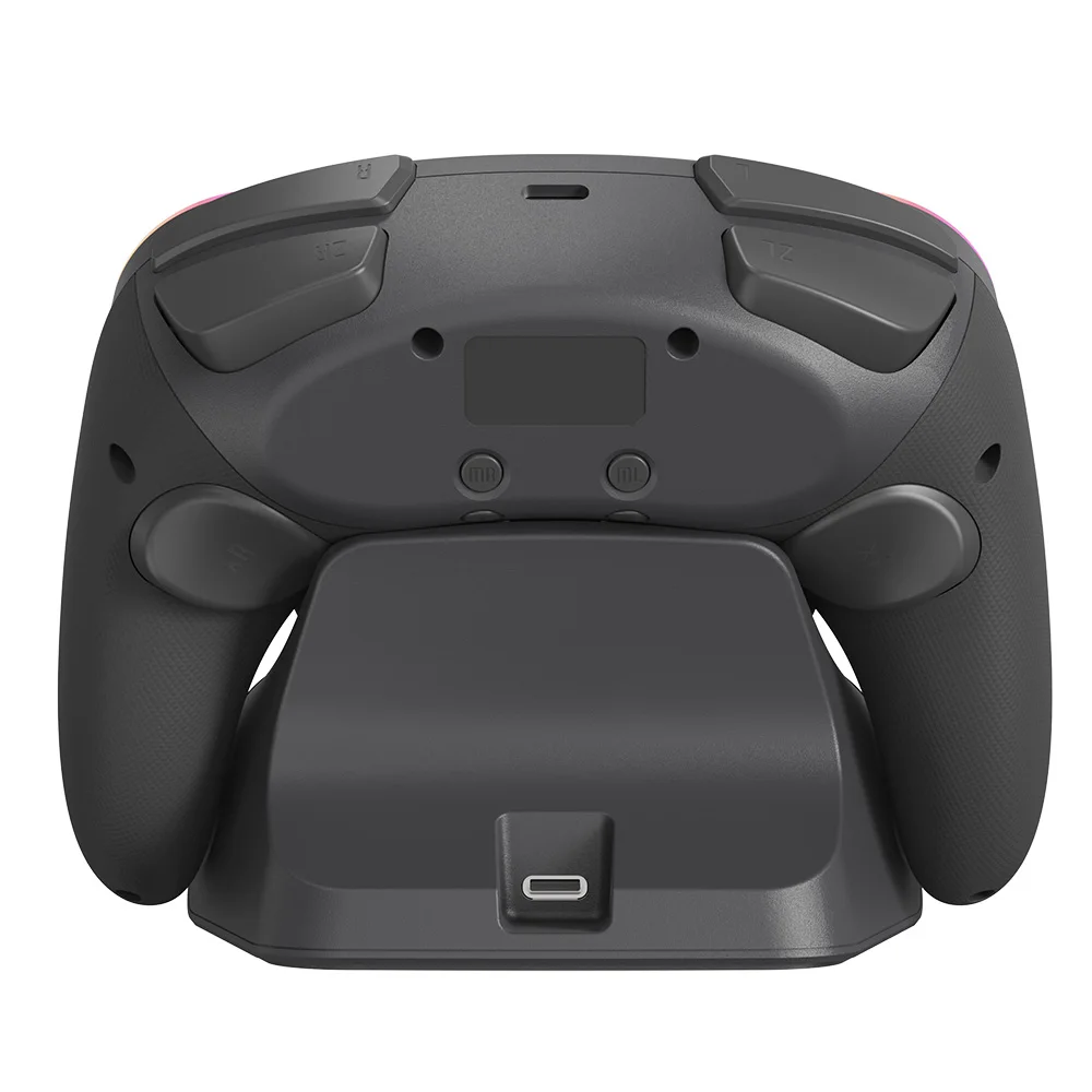 Está hecho de manera similar al pad de cubo, por lo que es bonito. La luz entra alrededor del área del palo y el botón, lo que lo hace colorido y bonito. El tacto de la tecla es muy mecánico, lo cual me gusta. El gatillo no es solo para L1 y R1, sino también para L2 y R2. No es genial para juegos de carreras, pero es bueno verlo como un pad para switches. Es barato y viene con cables de carga, por lo que la relación costo-efectividad es muy buena. Elegí pensando que el púrpura era el color base, pero es un poco diferente del color de firma real del cubo.