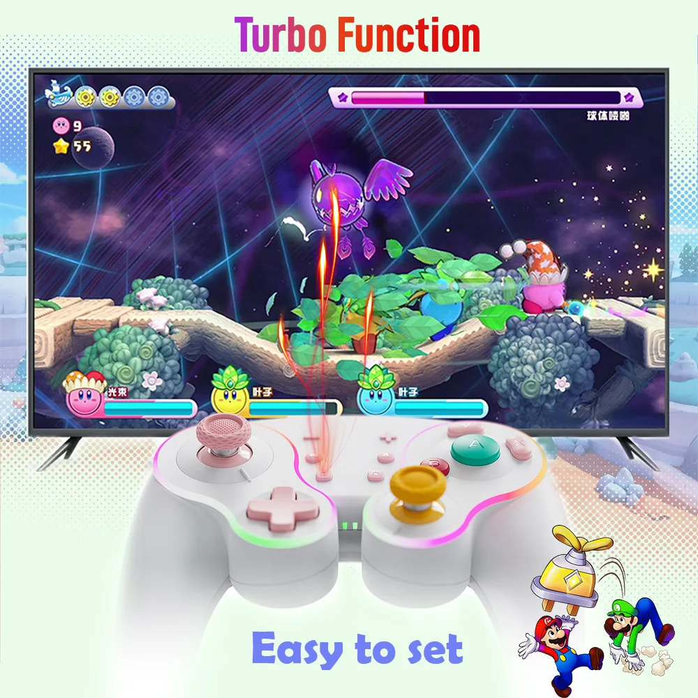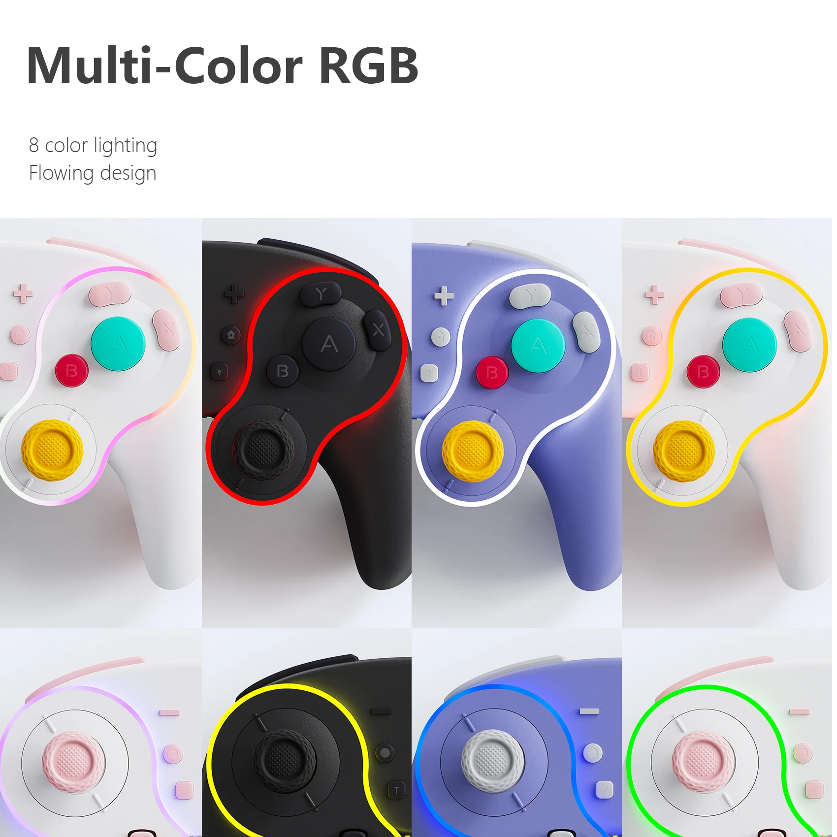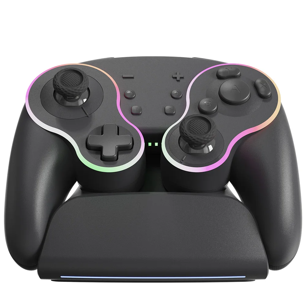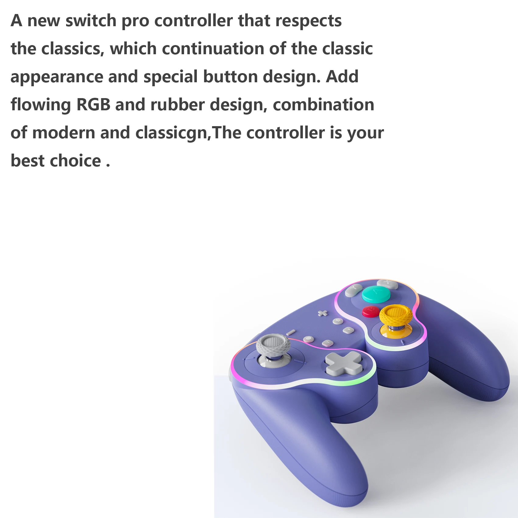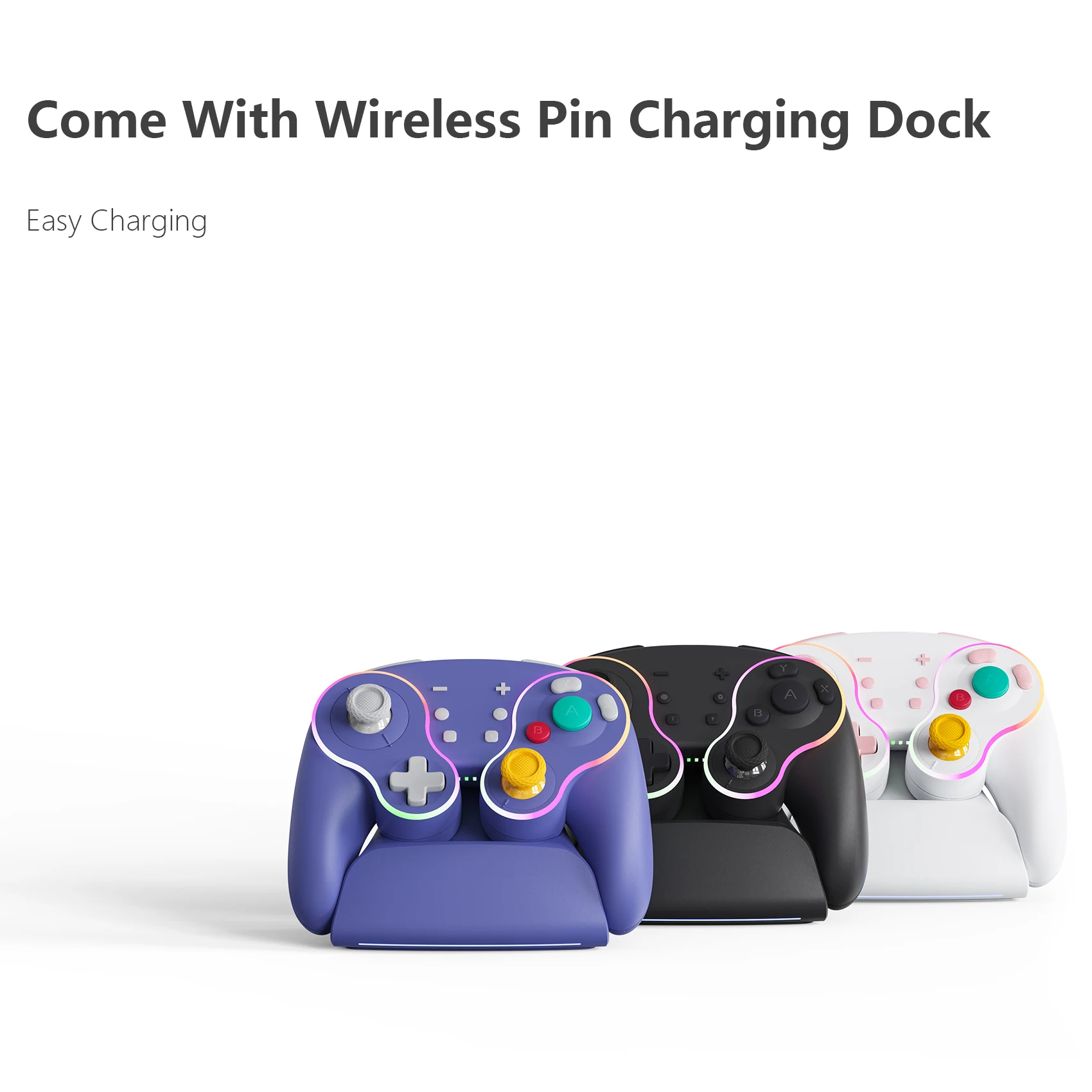 Está hecho de manera similar al pad de cubo, por lo que es bonito. La luz entra alrededor del área del palo y el botón, lo que lo hace colorido y bonito. El tacto de la tecla es muy mecánico, lo cual me gusta. El gatillo no es solo para L1 y R1, sino también para L2 y R2. No es genial para juegos de carreras, pero es bueno verlo como un pad para switches. Es barato y viene con cables de carga, por lo que la relación costo-efectividad es muy buena. Elegí pensando que el púrpura era el color base, pero es un poco diferente del color de firma real del cubo.