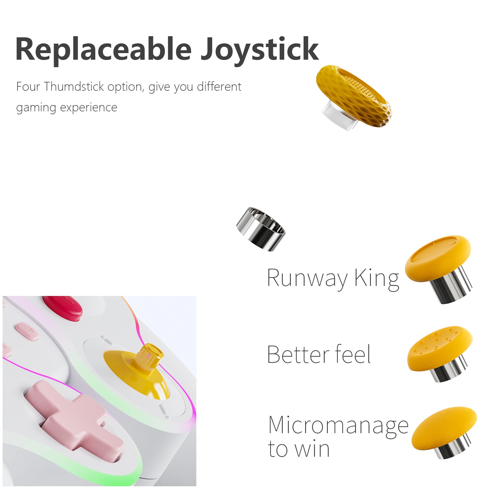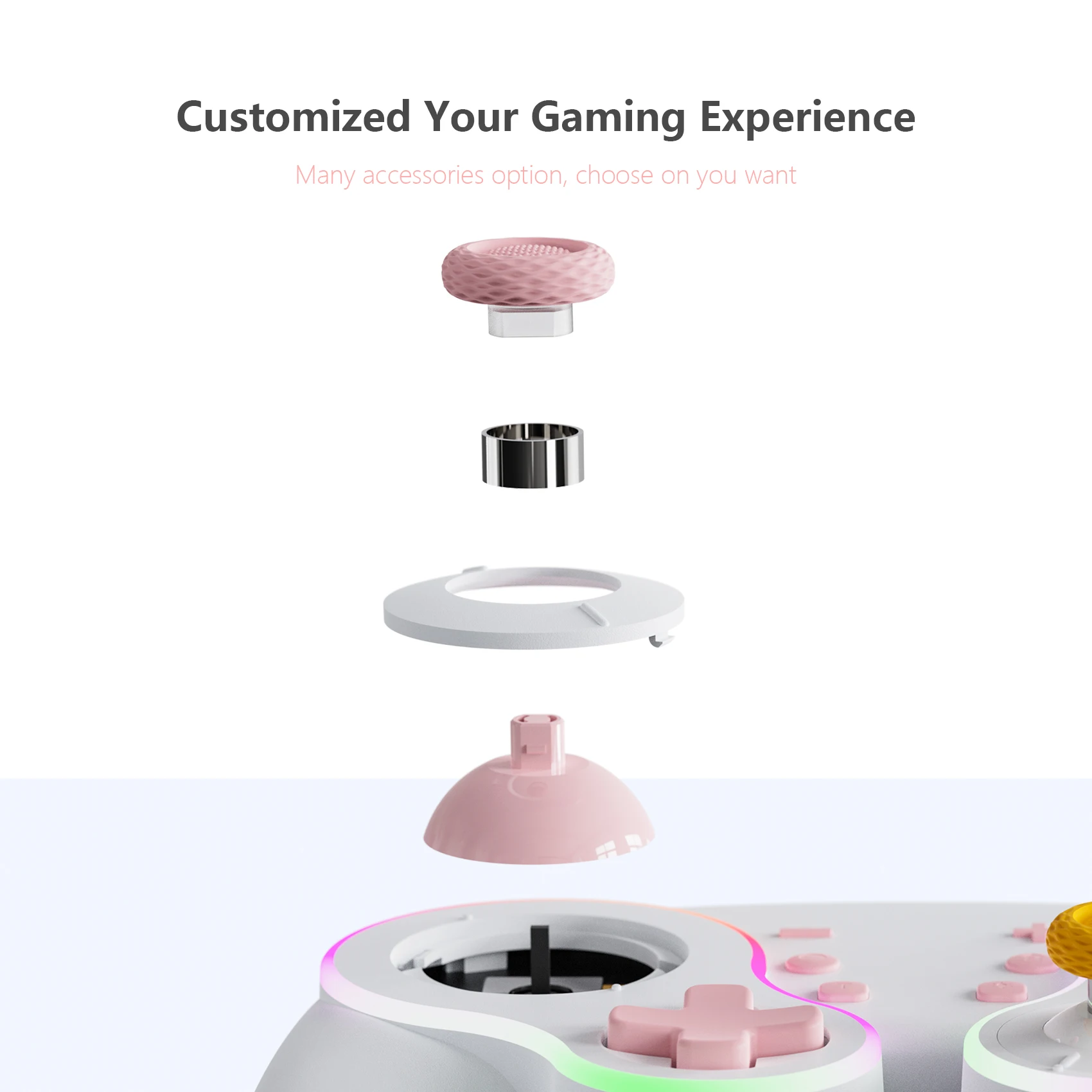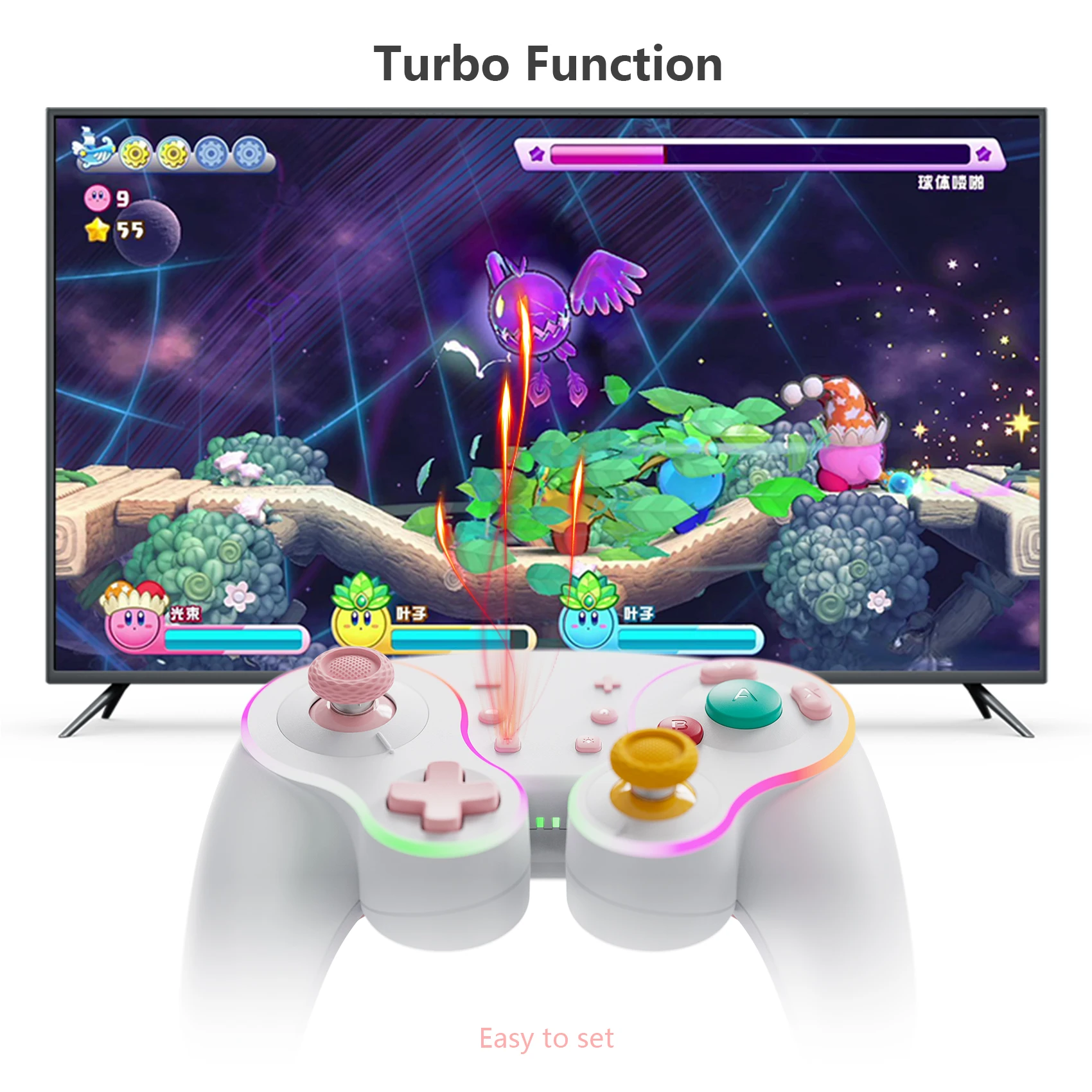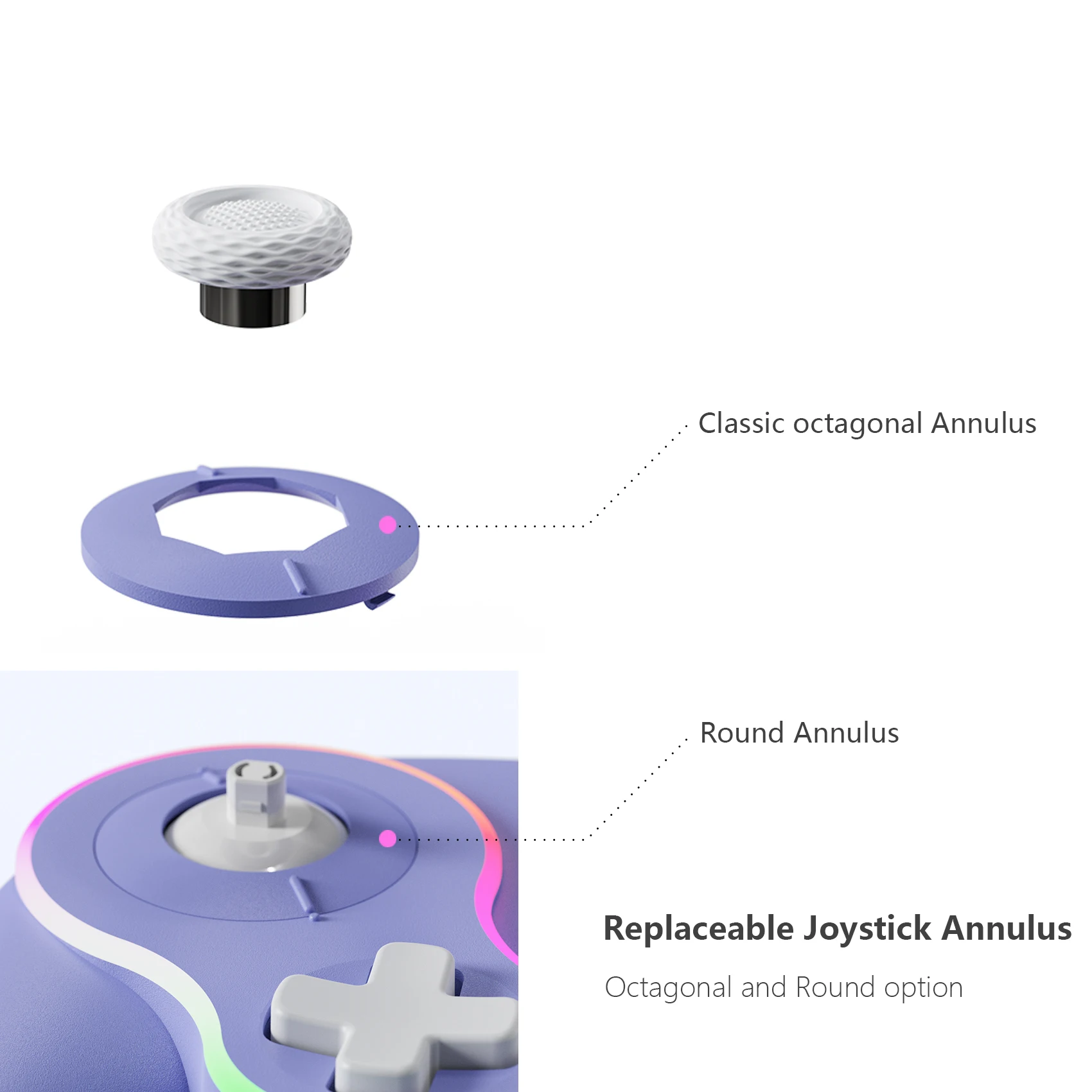 Está hecho de manera similar al pad de cubo, por lo que es bonito. La luz entra alrededor del área del palo y el botón, lo que lo hace colorido y bonito. El tacto de la tecla es muy mecánico, lo cual me gusta. El gatillo no es solo para L1 y R1, sino también para L2 y R2. No es genial para juegos de carreras, pero es bueno verlo como un pad para switches. Es barato y viene con cables de carga, por lo que la relación costo-efectividad es muy buena. Elegí pensando que el púrpura era el color base, pero es un poco diferente del color de firma real del cubo.