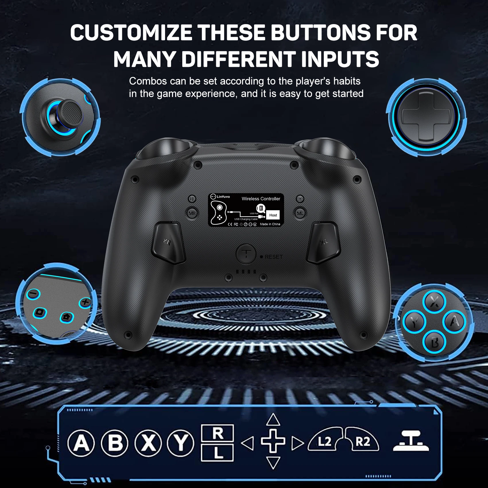 • Botón de disparo lineal avanzado:Experimente la acción suave y receptiva con el botón de disparo lineal del controlador inalámbrico LinYuvo.Garantiza una experiencia de juego mejorada para los usuarios.