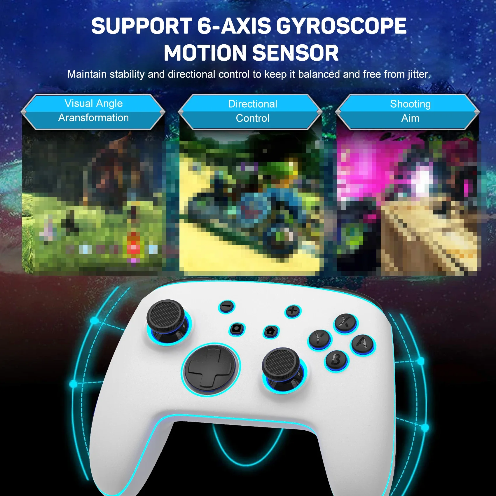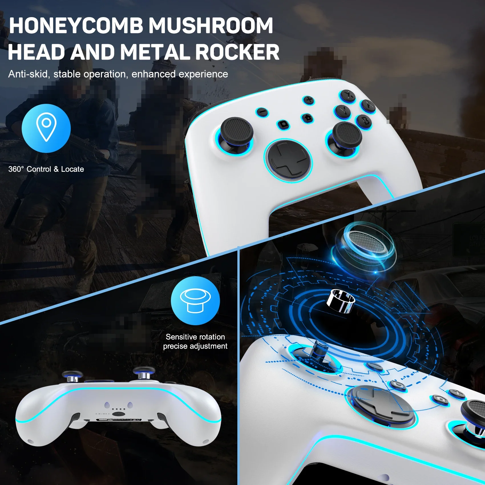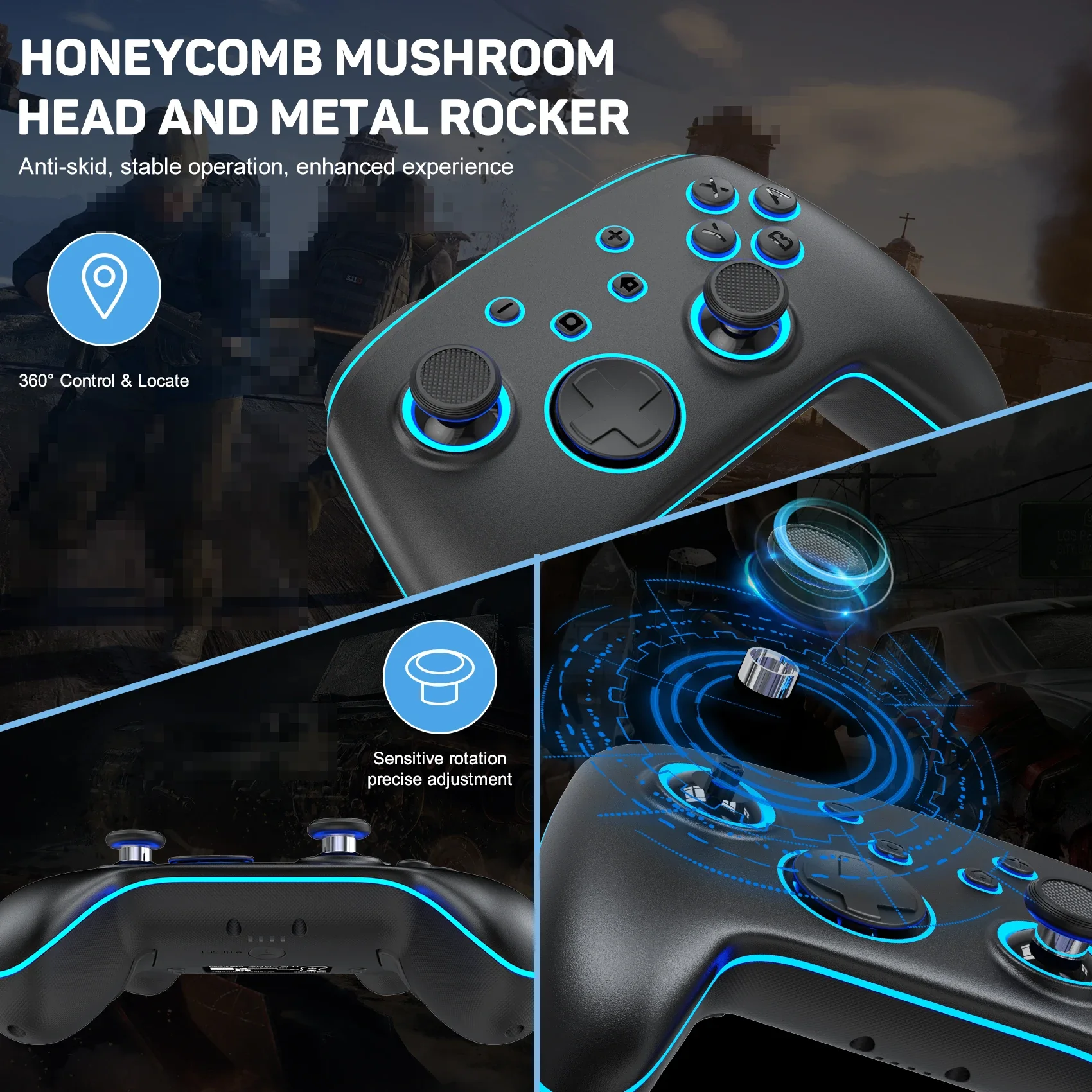 • Módulo sensor de joystick POLYSHINE:Equipado con el módulo sensor de joystick POLYSHINE, este gamepad garantiza un control preciso y un movimiento preciso en tus juegos favoritos.
