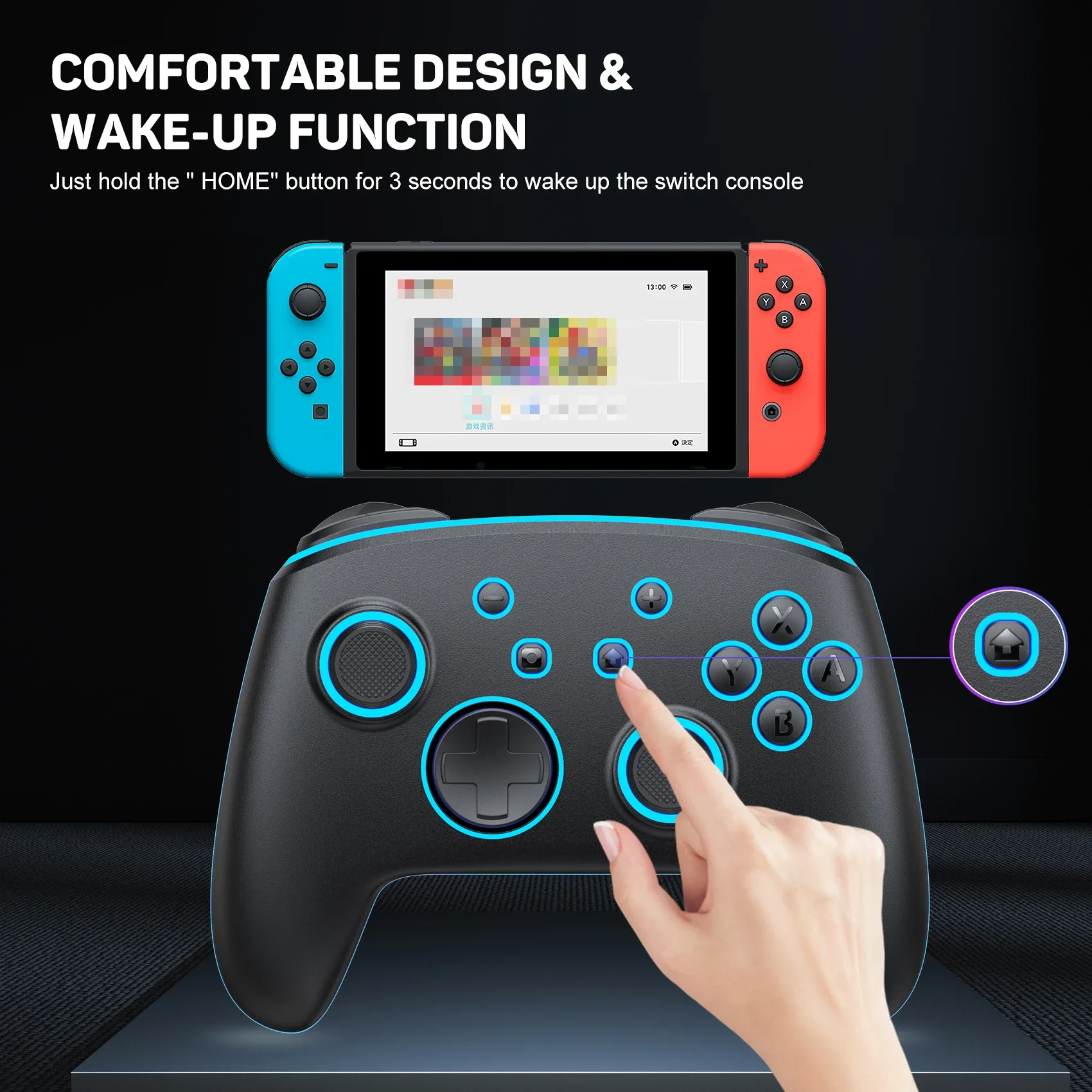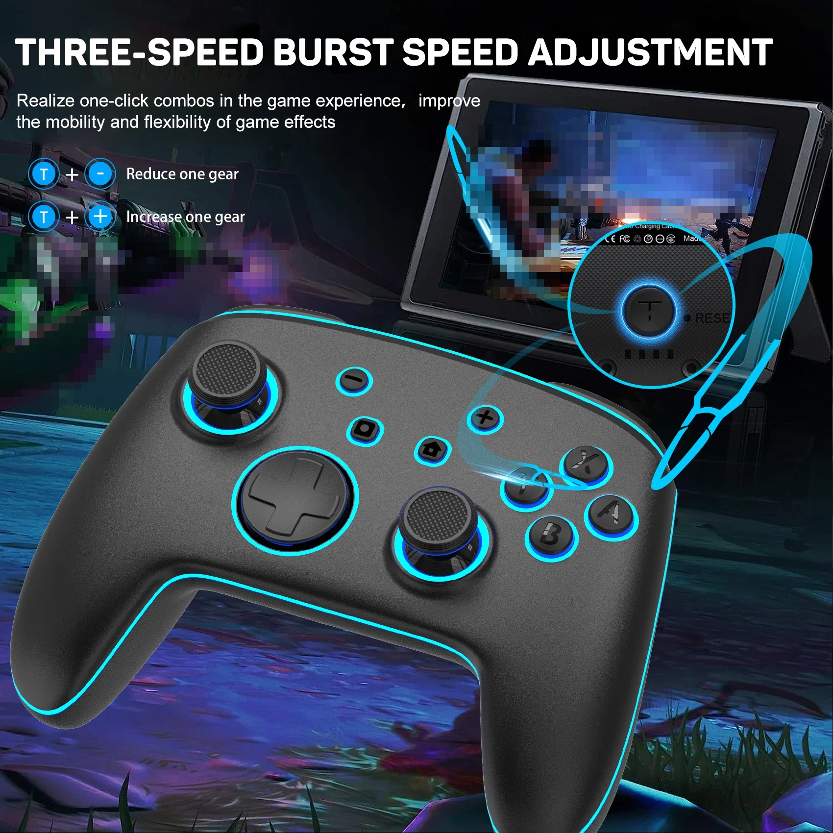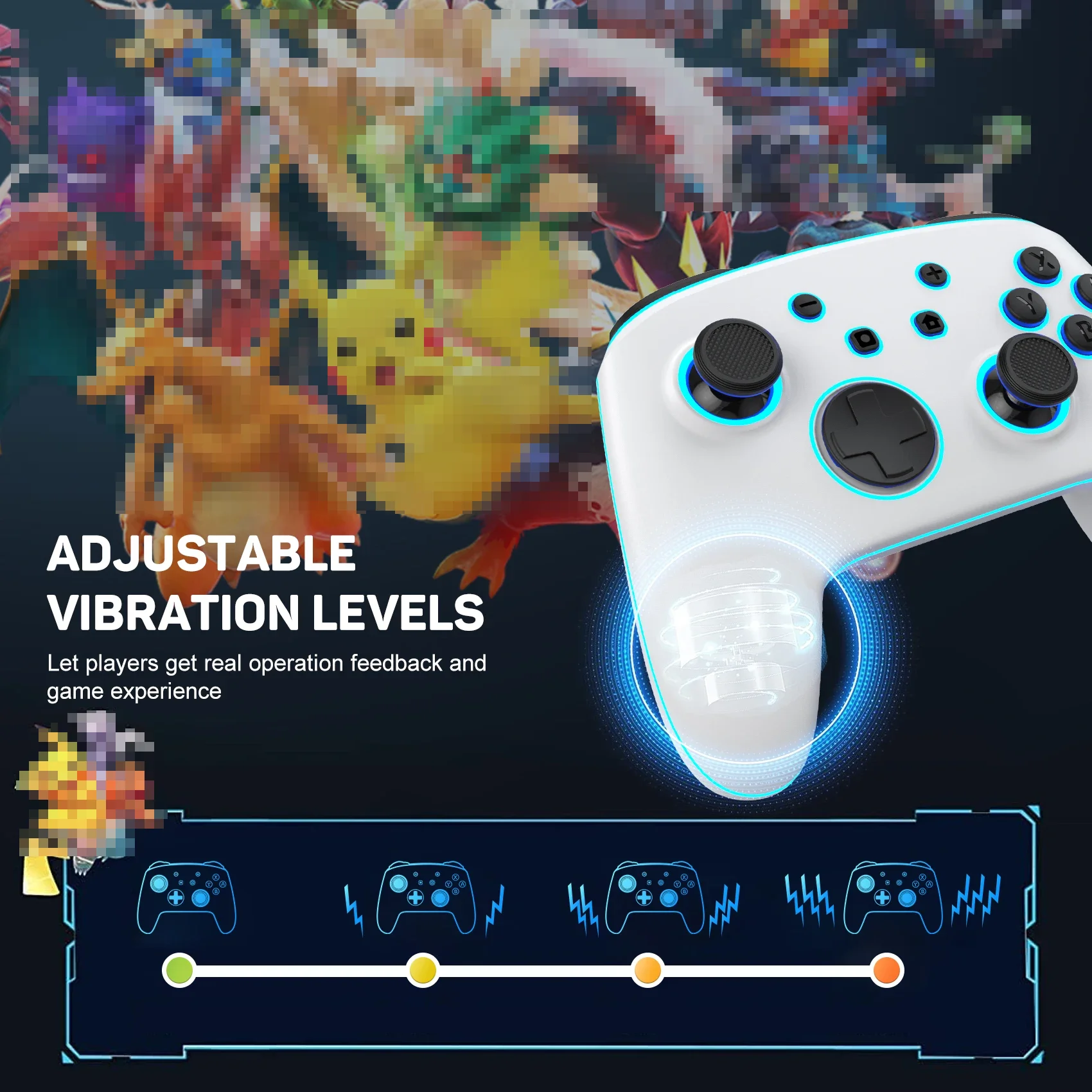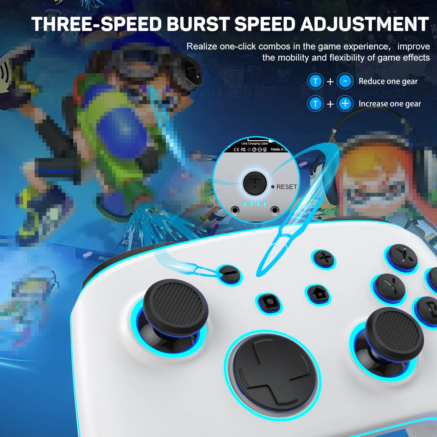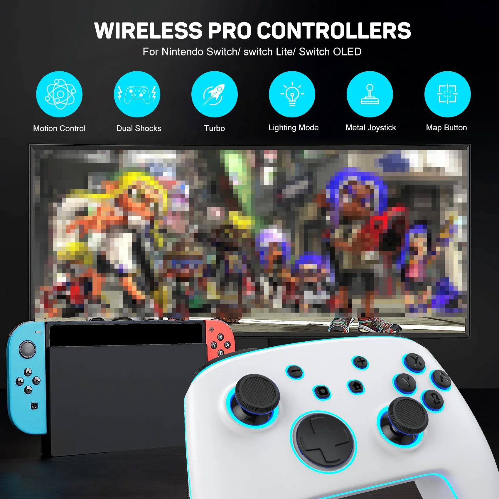 Controlador inalámbrico LinYuvo KS11 (sin Deadzone) para interruptor/Lite/OLED, con vibración, movimiento, turbo, joystick de metal y luz LED