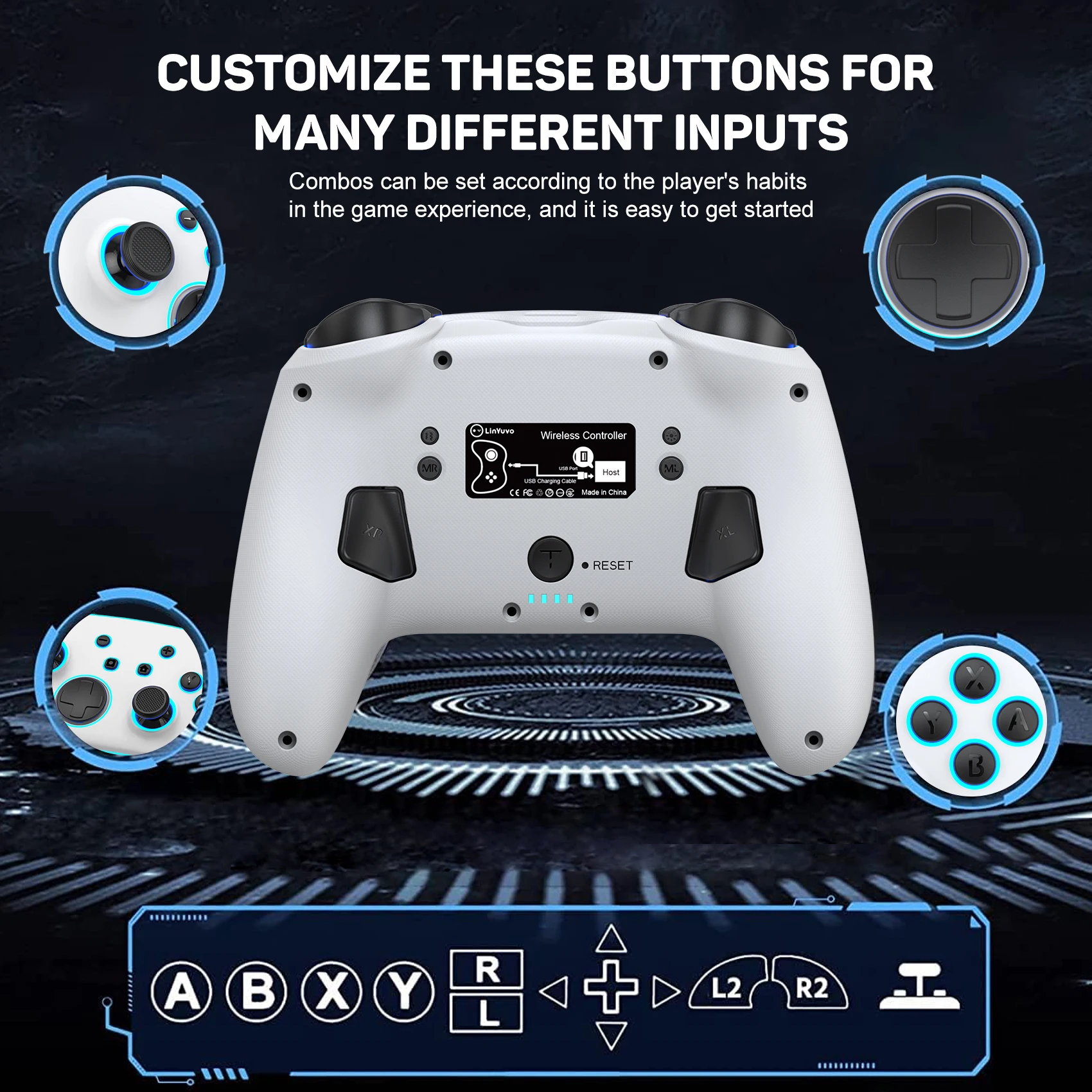 • Botón de disparo lineal avanzado:Experimente la acción suave y receptiva con el botón de disparo lineal del controlador inalámbrico LinYuvo.Garantiza una experiencia de juego mejorada para los usuarios.