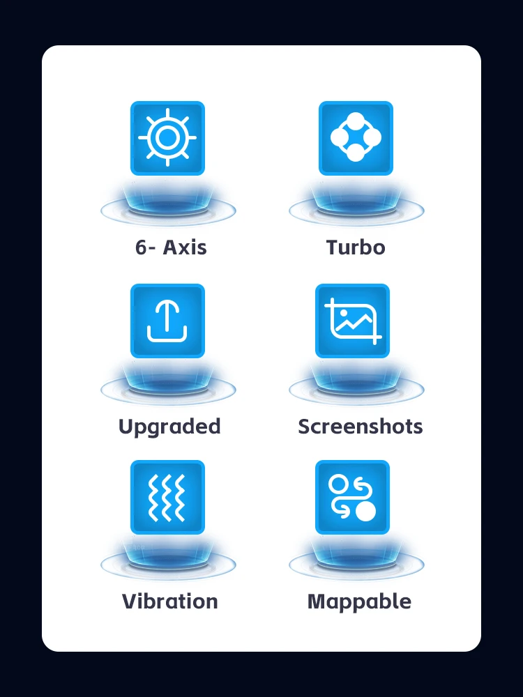 Motores de vibración dual incorporados con retroalimentación de vibración de 4 niveles: ninguno, débil, medio, fuerte (0%, 25%, 50%, 100%). Adopta un sensor de giroscopio de 6 ejes para lograr un control preciso de detección de movimiento, mejorando su experiencia de juego y permitiéndole sumergirse en el juego. Un clic para ajustar el modo de vibración para que se ajuste a sus preferencias. Los agarres rediseñados mantienen las manos de cansarse después de jugar durante mucho tiempo. El diseño antideslizante evita que te preocupes por las palmas sudorosas. Compartir botón ayudarle a compartir instantáneamente capturas de pantalla y vídeos.