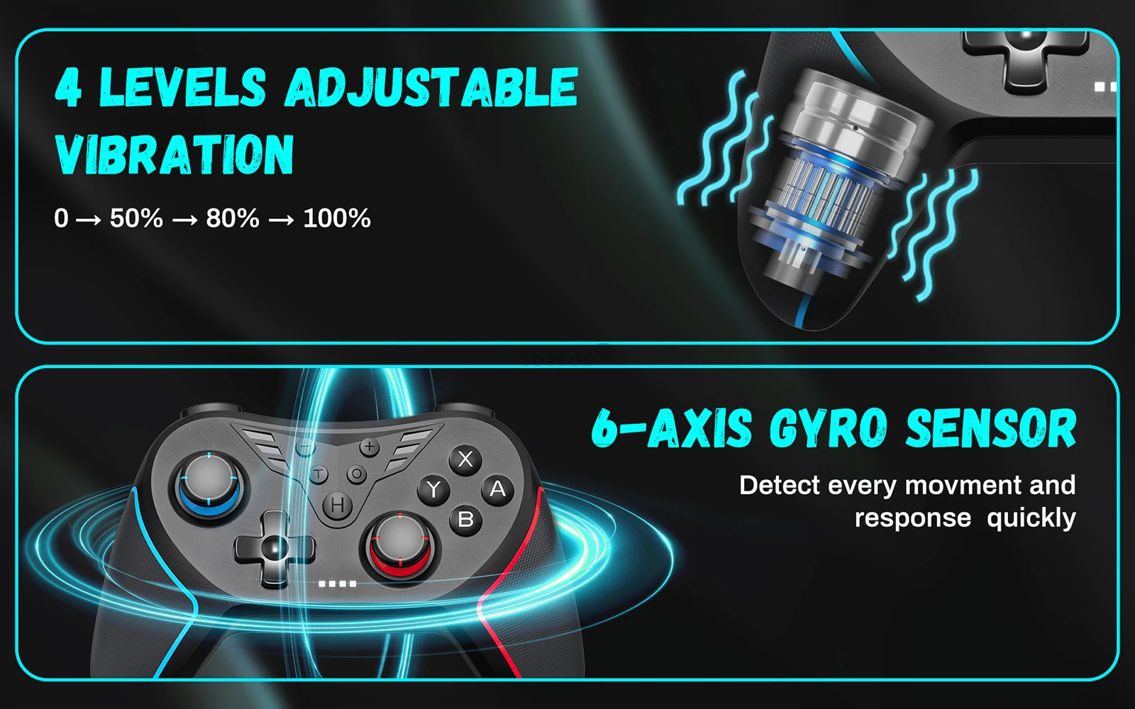 T43 Hall-Linear Joystick Controlador Inalámbrico para NS Switch Pro OLED Gamepad PC Macro Programación Vibración Wake-up 6-AXIS GYRO