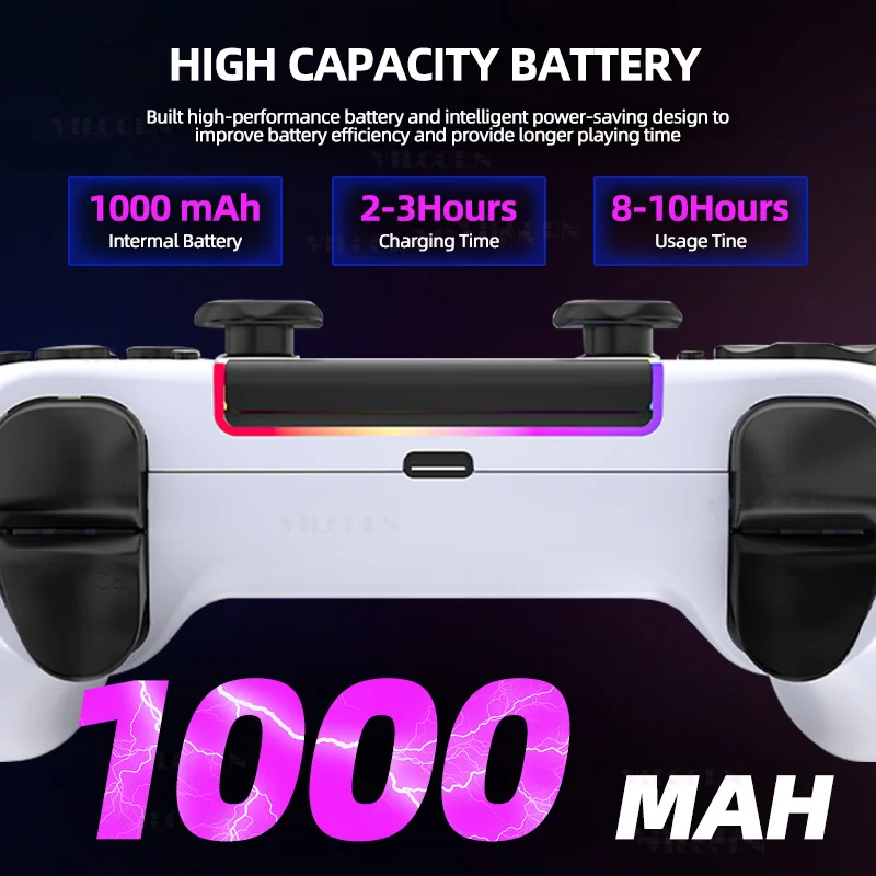 Batería incorporada de alto rendimiento de 1000 mAh con un diseño inteligente de ahorro de energía para mejorar la eficiencia de la batería y proporcionar entre 8 y 10 horas de uso.El tiempo de carga es de sólo 2 a 3 horas, lo que te permite disfrutar de largas sesiones de juego sin preocuparte por la energía.