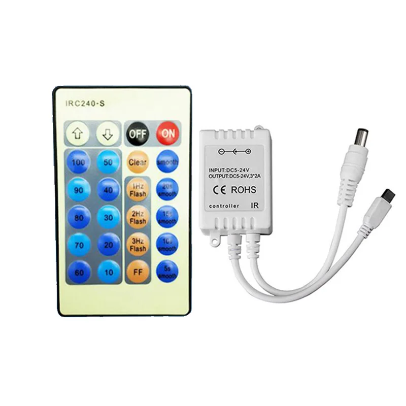 Controlador infrarrojo monocromático inalámbrico de 24 teclas RF remoto DC 5-24V para tira de luces LED de un solo Color 3528 5050 2835 5630 3014