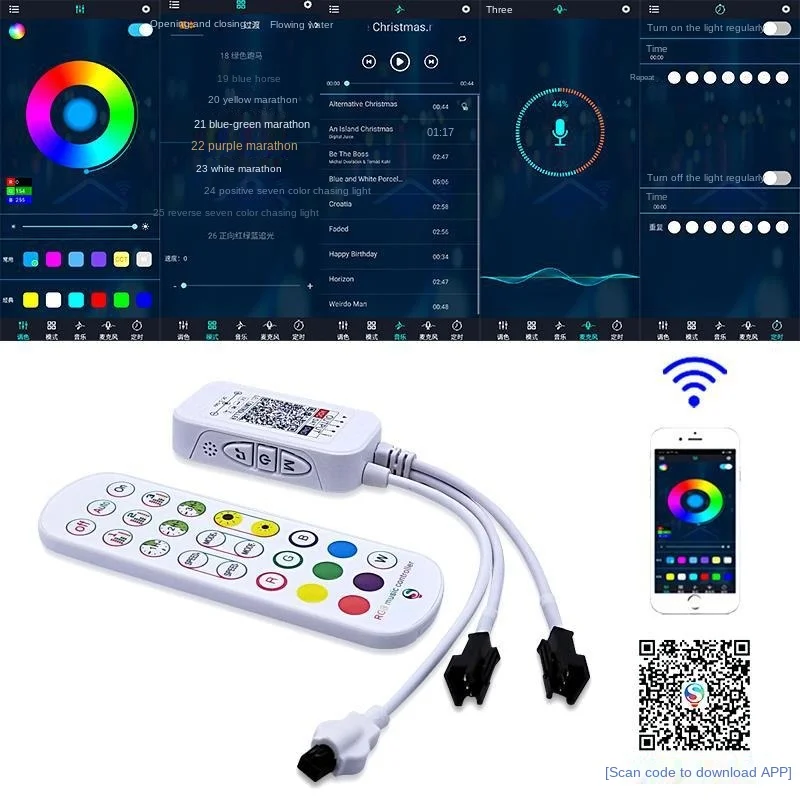 Comprar Controlador inteligente de música, cinta Led WS2812B WS2811, con Bluetooth, dirección Smd 5050 RGB, 24 teclas, IR