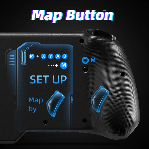 El botón M puede configurar y mapear X/Y/A/B/R... al botón cuadrado.Los jugadores pueden presionar fácilmente el botón de difícil acceso a través de 3L/3R, lo que simplificará el funcionamiento de los botones y aumentará la posibilidad de ganar los juegos.