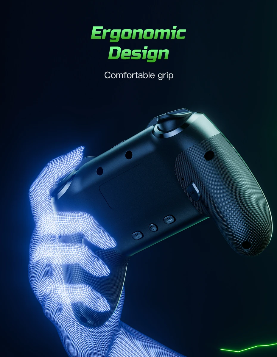 El sensor giroscópico de 6 ejes incorporado puede ayudarle a reaccionar rápidamente y mejorar específicamente su experiencia en juegos deportivos.Los botones y los joysticks son sensibles, sin demoras.Una tecla para controlar el nivel de vibración.Motores de vibración duales incorporados con retroalimentación de 4 niveles: fuerte, medio, débil y ninguno.El acabado satinado de goma es muy cómodo de sostener durante horas y no se desliza de las manos.