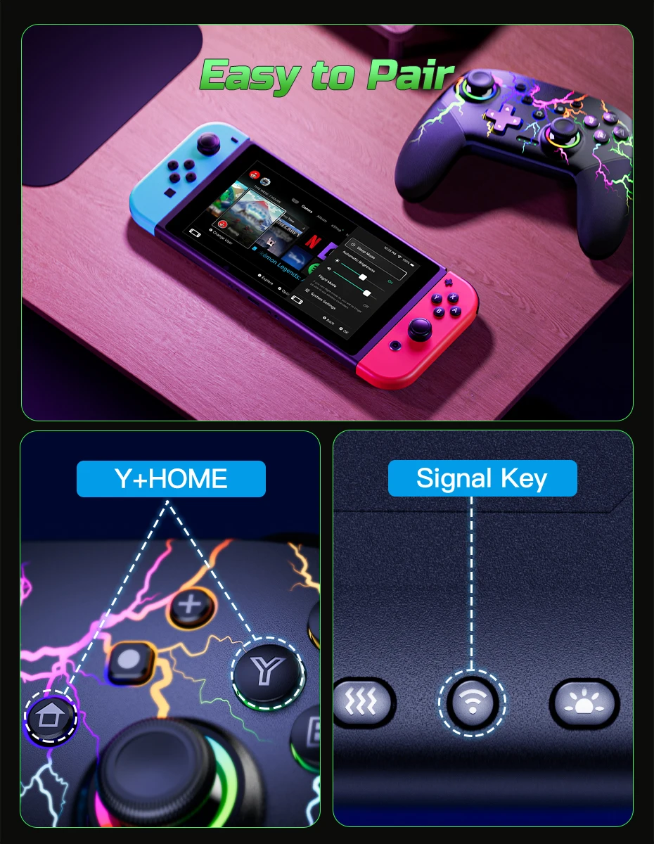 Comprar Controlador de interruptor inalámbrico 1000mAh Compatible con Switch/Lite/OLED/PC/Windows/iOS/Android, controlador RGB Lightning Switch Pro