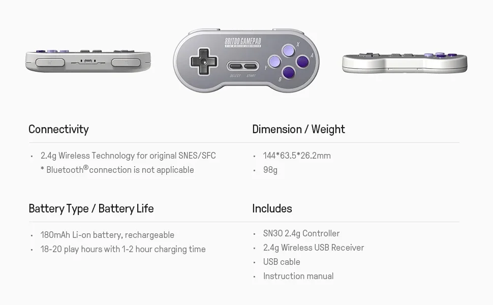 Mando inalámbrico 8BitDo SN30 2.4G para SNES/SFC-Super NES originales