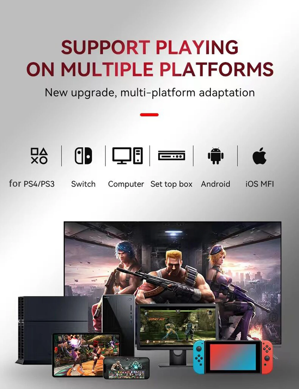 1.Los palos de juegos Arcade te permiten jugar miles de juegos en una variedad de plataformas diferentes.2.Funciones Turbo y Macro: el joystick puede liberar habilidades combinadas con un botón, funciones Turbo y Macro, admitir la configuración de la función de combinación de botones (TURBO), experimentar la combinación, evitar errores de operación y obtener una mejor experiencia.