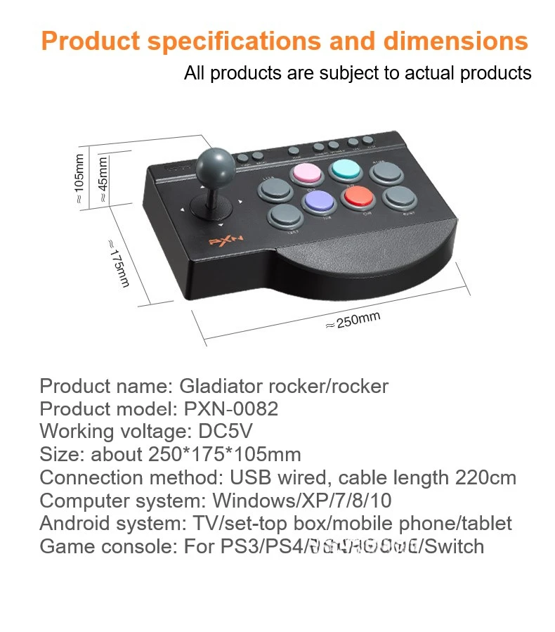 Comprar Controlador de Joystick Street Fighter para PC, PS4, PS3, Switch, Android TV, Arcade Fighting Game Fight Stick PXN 0082 USB