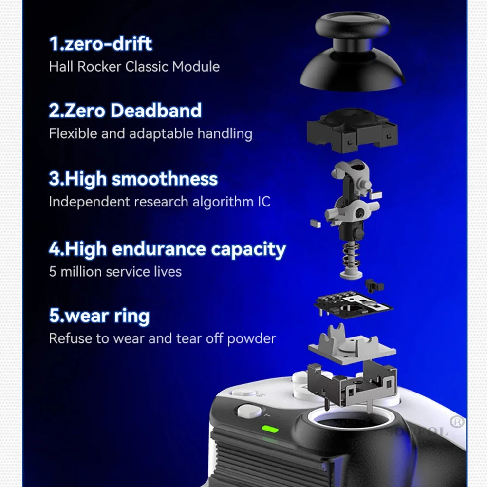 El joystick D9 continúa actualizándose, con muchos años de experiencia en la industria y el apoyo de la investigación sobre los hábitos de millones de jugadores combinados con algoritmos de juego para adaptar el joystick Hall para mejorar la experiencia.