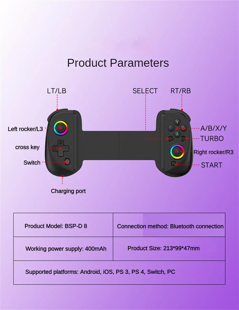 3. El controlador D8 utiliza teclas combinadas de dirección cruzada, lo que está en línea con los hábitos de control de los jugadores en masa, lo que facilita y acelera a los jugadores convertir comandos durante el control del juego.