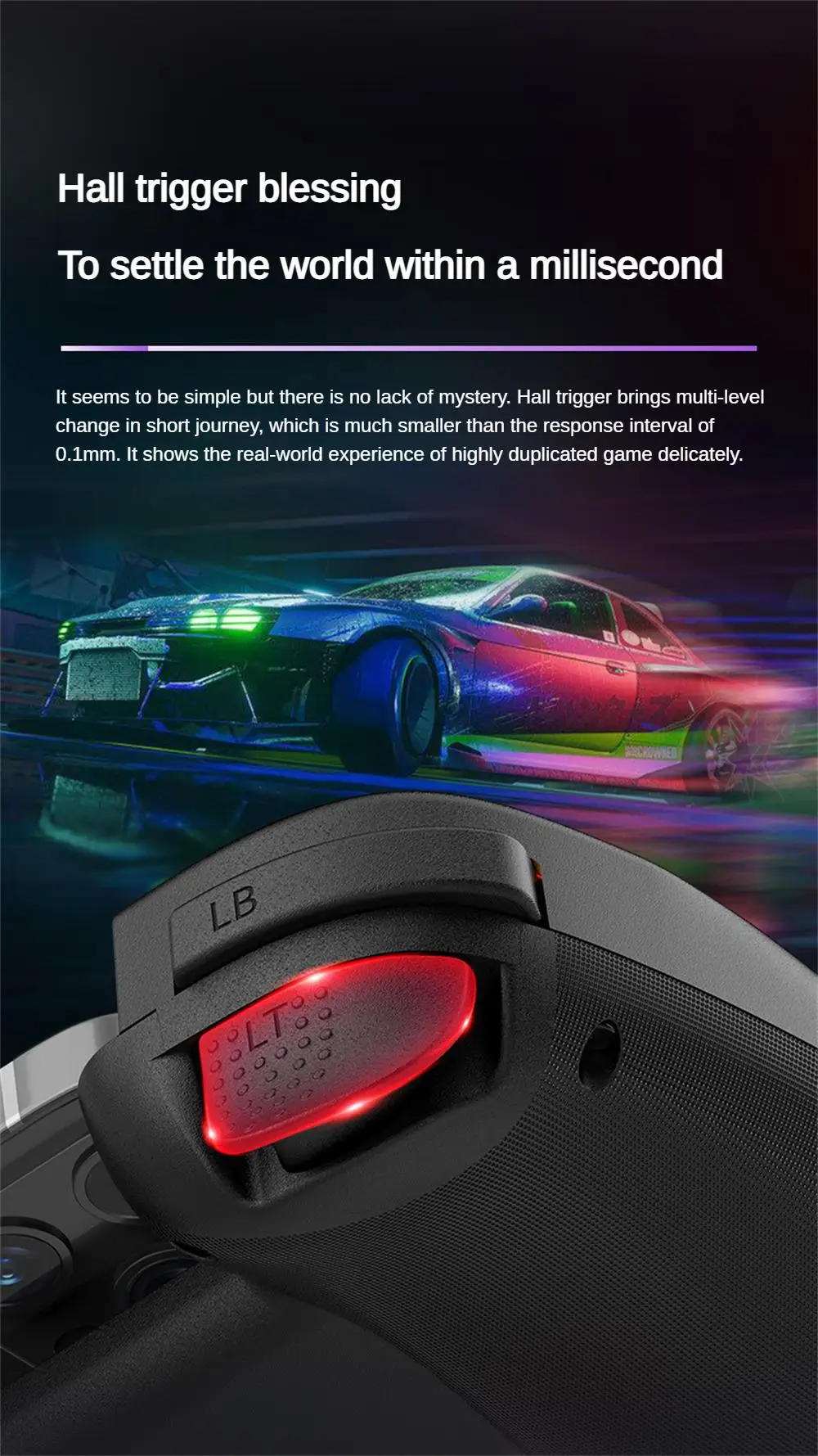 1. Aparentemente simple pero lleno de misterio, el disparador Hall trae cambios de varios niveles en un trazo corto, con un intervalo de respuesta mucho menor de 0,1mm. El delicado rendimiento reproduce altamente la experiencia real del juego.