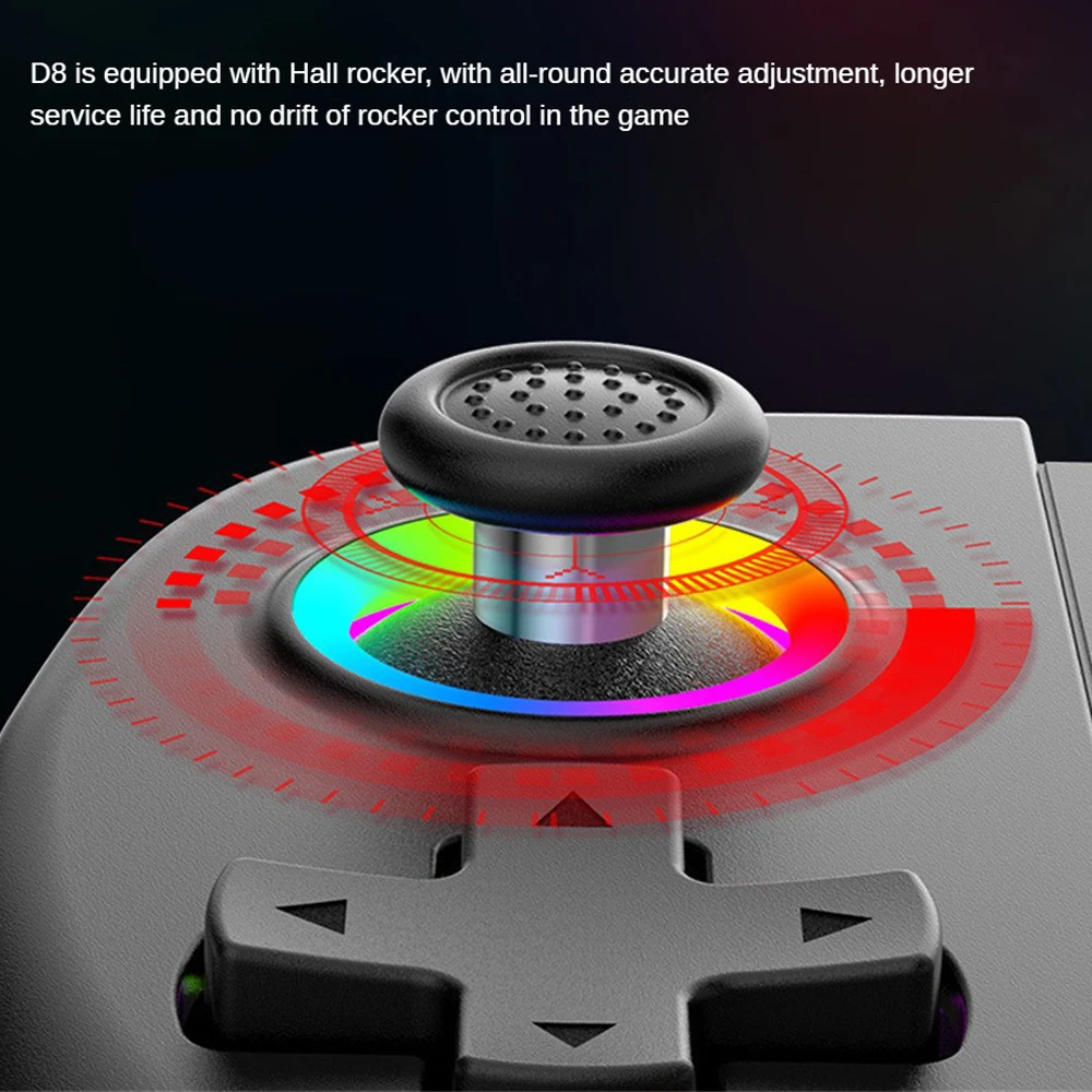 2. El D8 está equipado con un joystick Hall, que se puede ajustar con precisión en todas las direcciones, tiene una vida útil más larga y el control del joystick no se desplaza durante el juego.