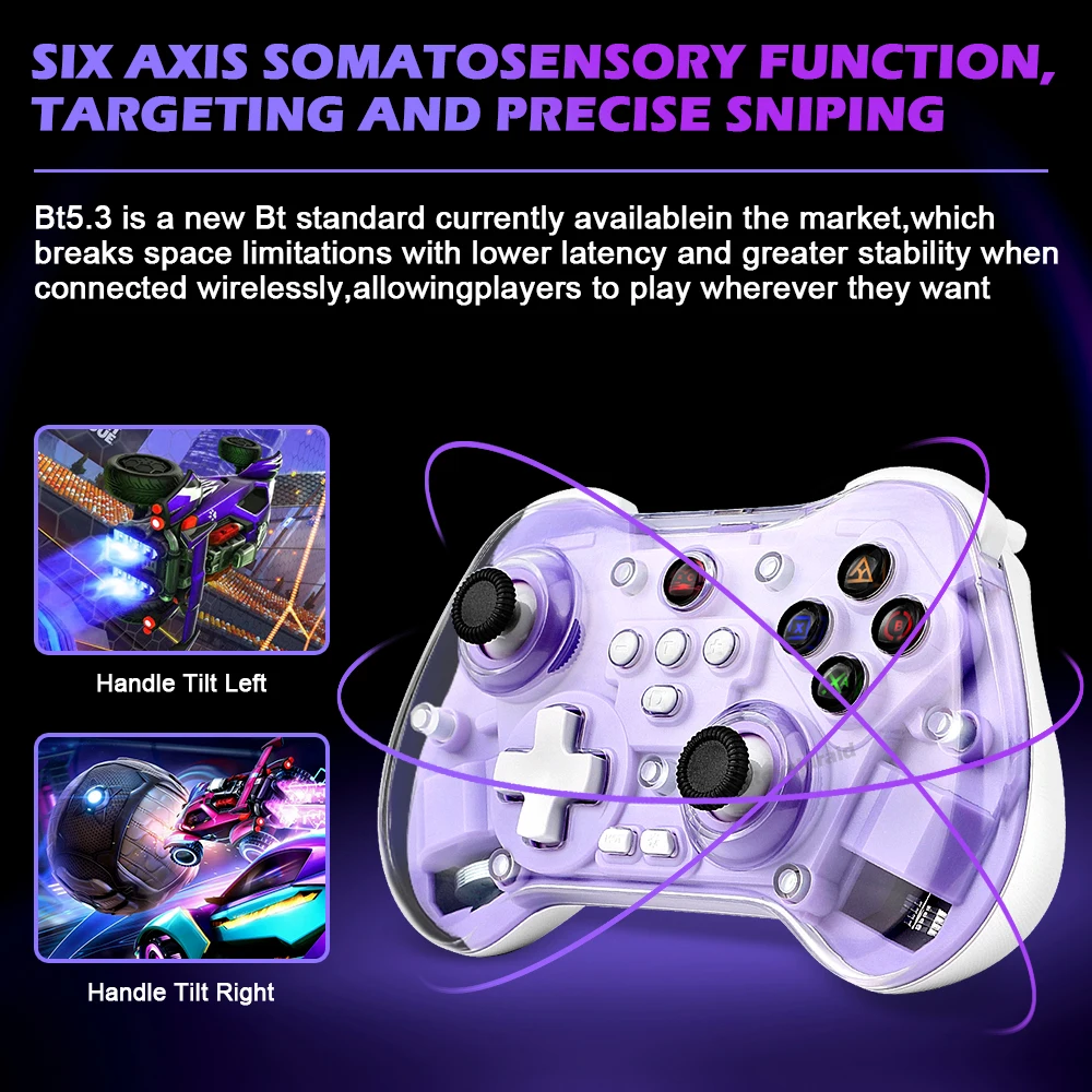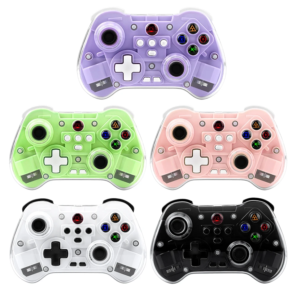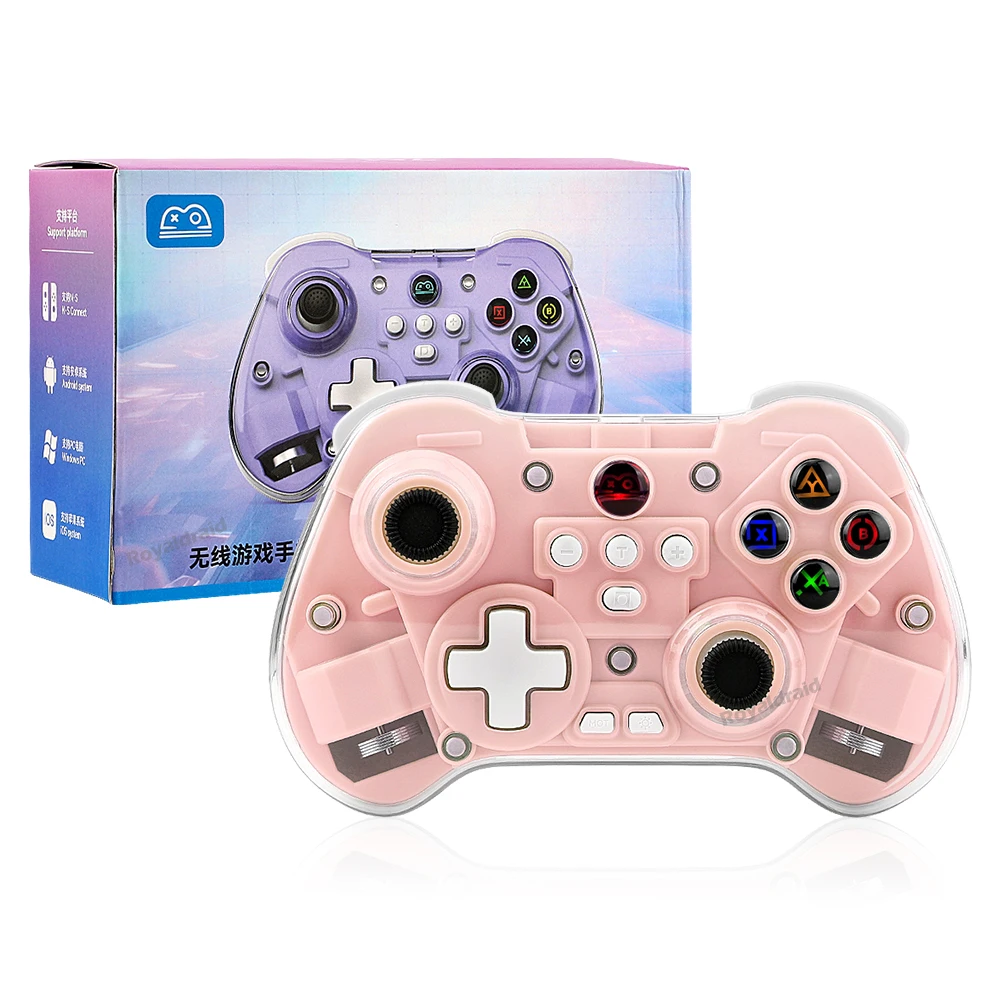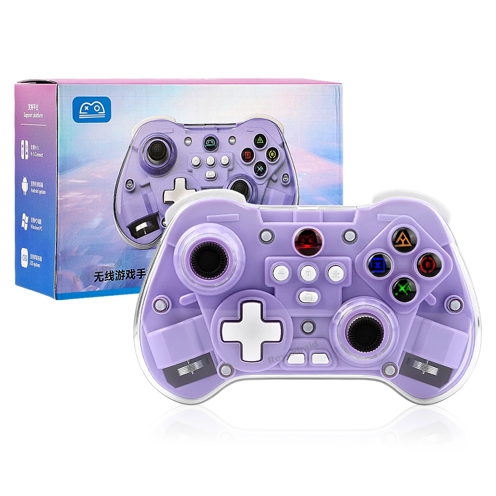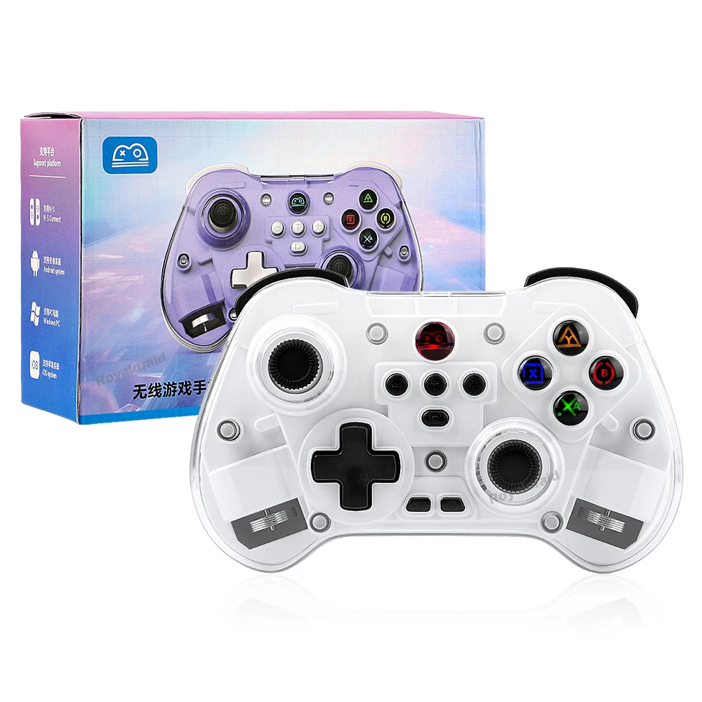 modname=ckeditor Controlador de juego inalámbrico transparente Z01X, Sensor de movimiento BT de 6 ejes, Joystick de pasillo programable Turbo para Switch/PC/iOS/Mac/AndroidCaracterísticas:Gamepad BT inalámbrico Z01X: 1.Admite múltiples plataformas: Switch, móvil/tableta, PC.2.Equipado con un joystick Hall; Disparador Hall; Botones de función adhesivo conductor con silicona elástica incorporada para garantizar un toque receptivo y disfrutar de un delicado placer de juego.3.Carcasa de superficie magnética transparente, estructura magnética de liberación rápida mejorada, reemplazable en cualquier momento, constantemente fresca.4.Equipado con teclas traseras de programación macro personalizadas, giroscopio con detección de movimiento de seis ejes, motor de vibración dual HD ajustable y transmisión continua TURBO con un solo clic.5.Wireless BT3.0 es un nuevo estándar de la industria que rompe limitaciones de espacio con menor latencia y mayor estabilidad en conectividad inalámbrica, lo que permite a los jugadores jugar donde quieran.Velocidad de retorno de hasta 800 Hz, con una experiencia operativa más delicada.7.Batería de larga duración, capacidad de la batería: 600 mAh, tiempo de uso continuo 10 horas.Distancia de transmisión BT 8 metros, voltaje de trabajo DC3.7V, corriente de trabajo 35mA.Especificación:Soporte de juegos multiplataforma para sistema NS Switch/PC/Android/iOS1.Voltaje de funcionamiento: CC 3,7 V 2.Corriente de trabajo: aproximadamente 10 mA 3.Tiempo de uso continuo: 20H 4.Corriente de sueño: 5uA 5.Voltaje/corriente de carga: DCSV/500mA 6.Distancia de transmisión Bluetooth:=8M 7.Capacidad de la batería: 400 mAh 8.Tiempo en espera: completamente cargado y izquierdo durante 60 díasLista de embalaje:1 * controlador de juego 1 * cable de carga CC USB 1 * Manual