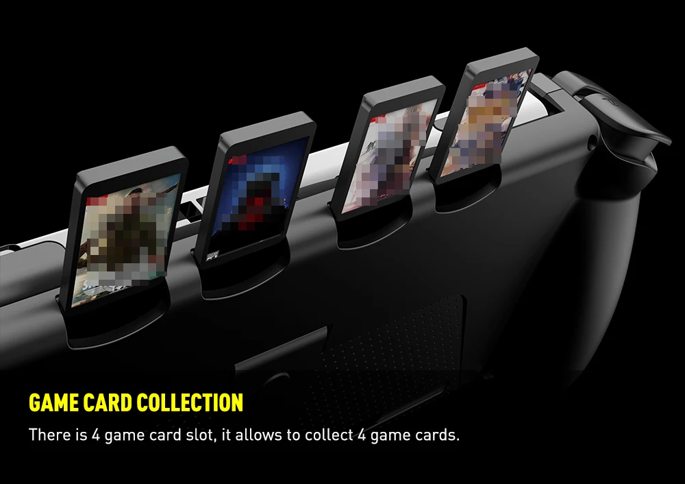 Retroalimentación de vibración dual, la fuerza de la vibración se puede ajustar.Hay 4 ranuras para tarjetas de juego en la parte posterior que se utilizan para coleccionar.Juego de soporte en la carcasa trasera para función de pie.ESPECIFICACIÓN: