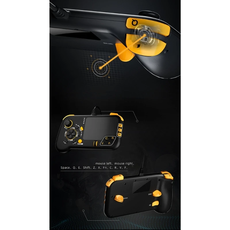 DISEÑO DE BOTONES ERGONÓMICOS Y BOTONES EXTENSIBLES CON TECLA MODIFICADORA: muévase simultáneamente con el joystick derecho, apunte con el Trackpad, dispare, salte y haga muchos más, gracias a los botones y trackpad cuidadosamente colocados. Al usar la tecla modificadora, el mapeo de teclas del D-pad y otros botones se puede cambiar para cumplir con los requisitos de todo tipo de juegos.