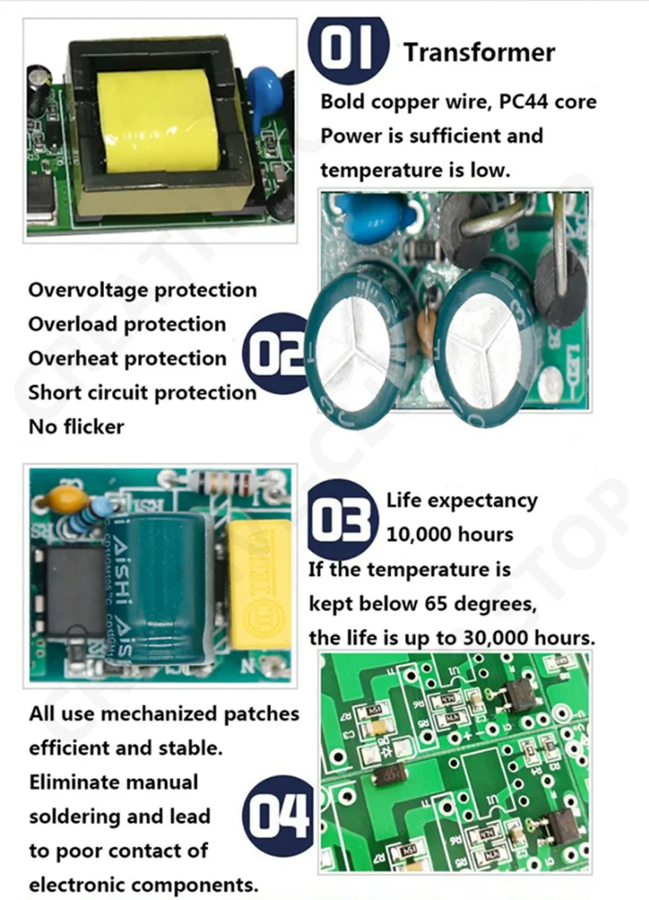 2-Chip Adoptando la marca de primera línea IC-Aishi Protección de sobretensión de corriente constante inteligente de alta calidad, protección contra sobrecarga, protección contra sobrecalentamiento, protección contra cortocircuitos Sin parpadeo