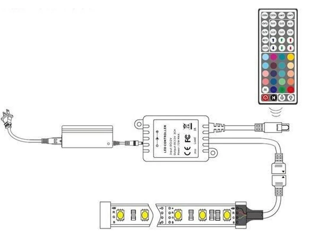 Comprar Controlador LED con 44 teclas, controlador de luces LED IR RGB, atenuador remoto IR DC12V 6A para RGB 3528 5050, tira de LED 12V