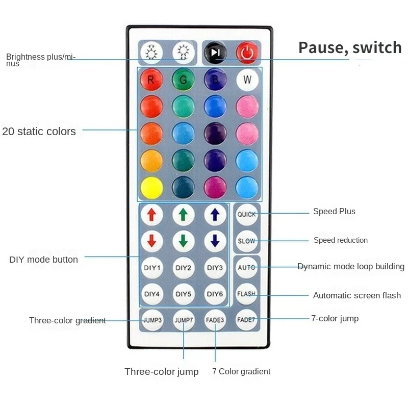 Comprar Controlador LED con 44 teclas, controlador de luces LED IR RGB, atenuador remoto IR DC12V 6A para RGB 3528 5050, tira de LED 12V