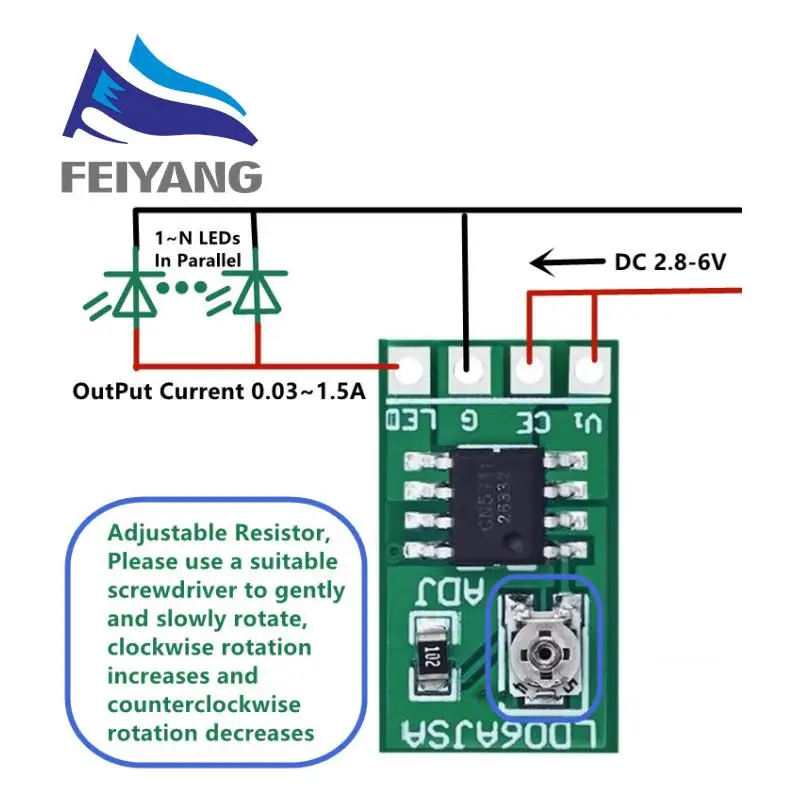 Voltaje de funcionamiento: CC 2,8-6 V (perfecto para controlador LED de 3 V 3,3 V 3,7 V 4,5 V 5 V 6 V)