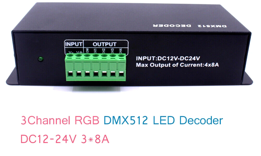 Señal de entrada:DMX512/1990Señal de salida:3 canales PWM constante