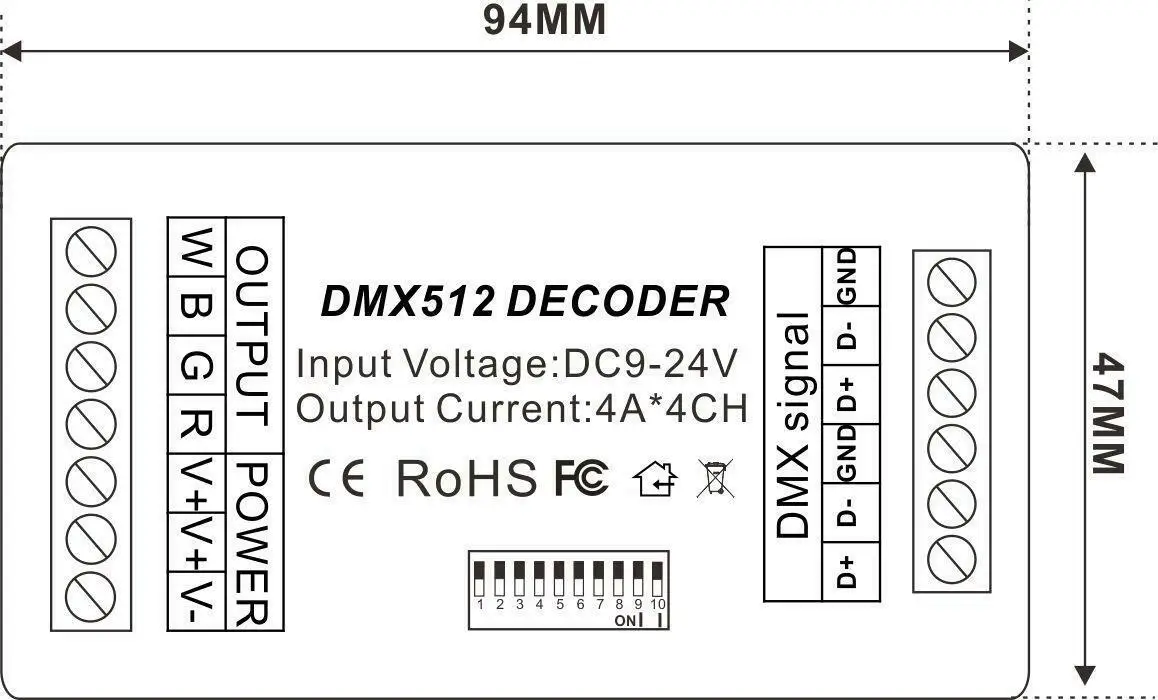 Señal de entrada: DMX512/1990Señal de salida:4 canales PWM constante