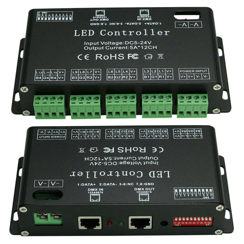 Controlador LED DMX512 RGB RGBW de 3/4/6/12/30CH, controlador dimmer decodificador DMX512
