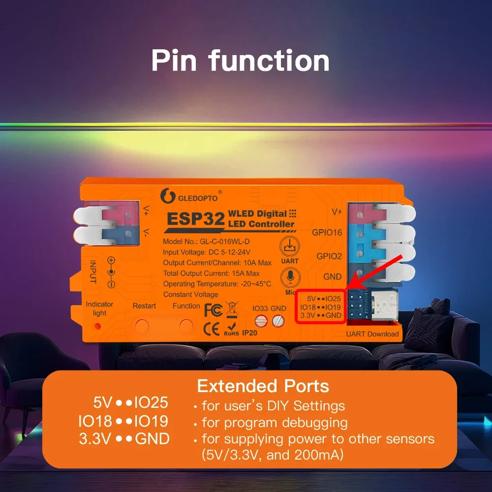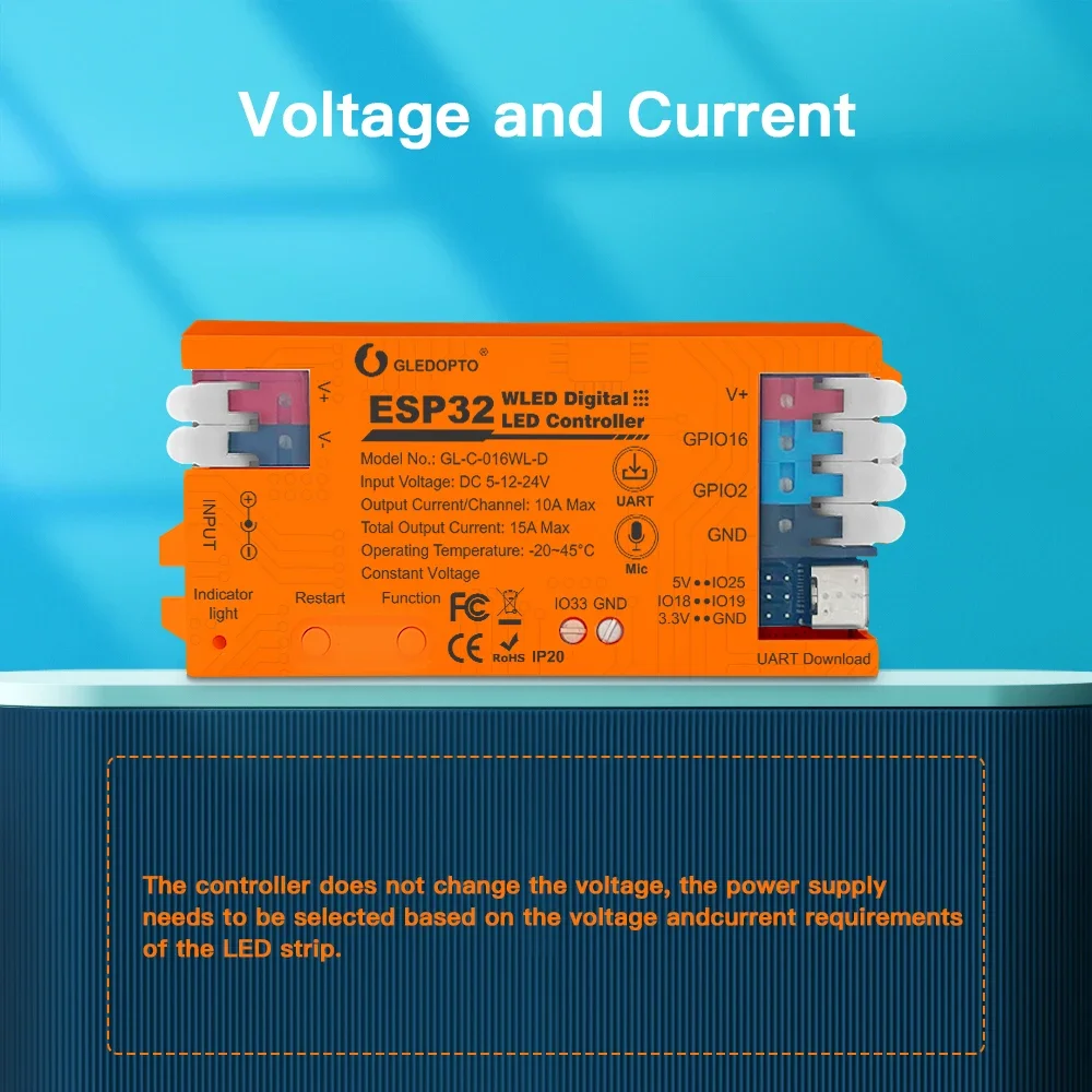 Nombre del producto: Controlador de luz de tira ESP32 ESP8266 WLED con micrófono y UART