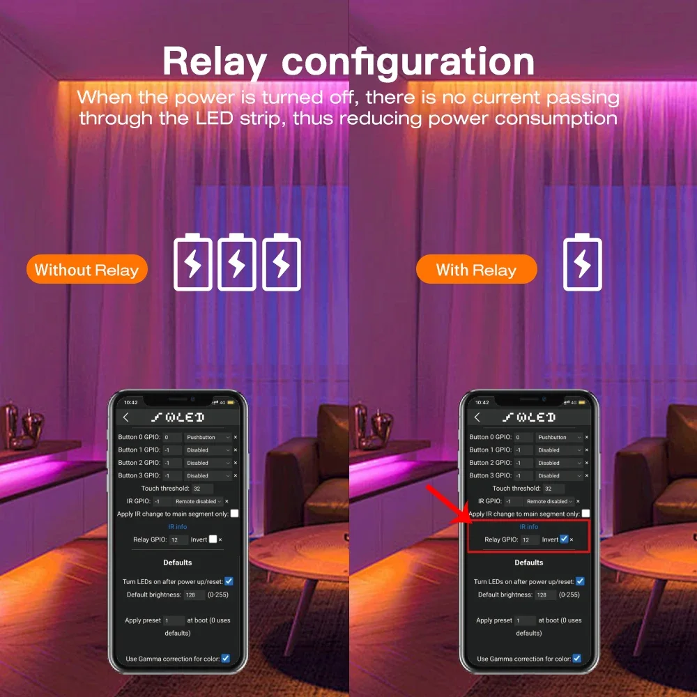 Micrófono incorporado, diseño ecológico: el micrófono incorporado sincroniza sus luces con ritmos musicales, creando una experiencia audiovisual cautivadora.Compatible con el control remoto WLED, también incluye un relé incorporado para minimizar el consumo de energía en espera, haciéndolo energéticamente eficiente y respetuoso con el medio ambiente.