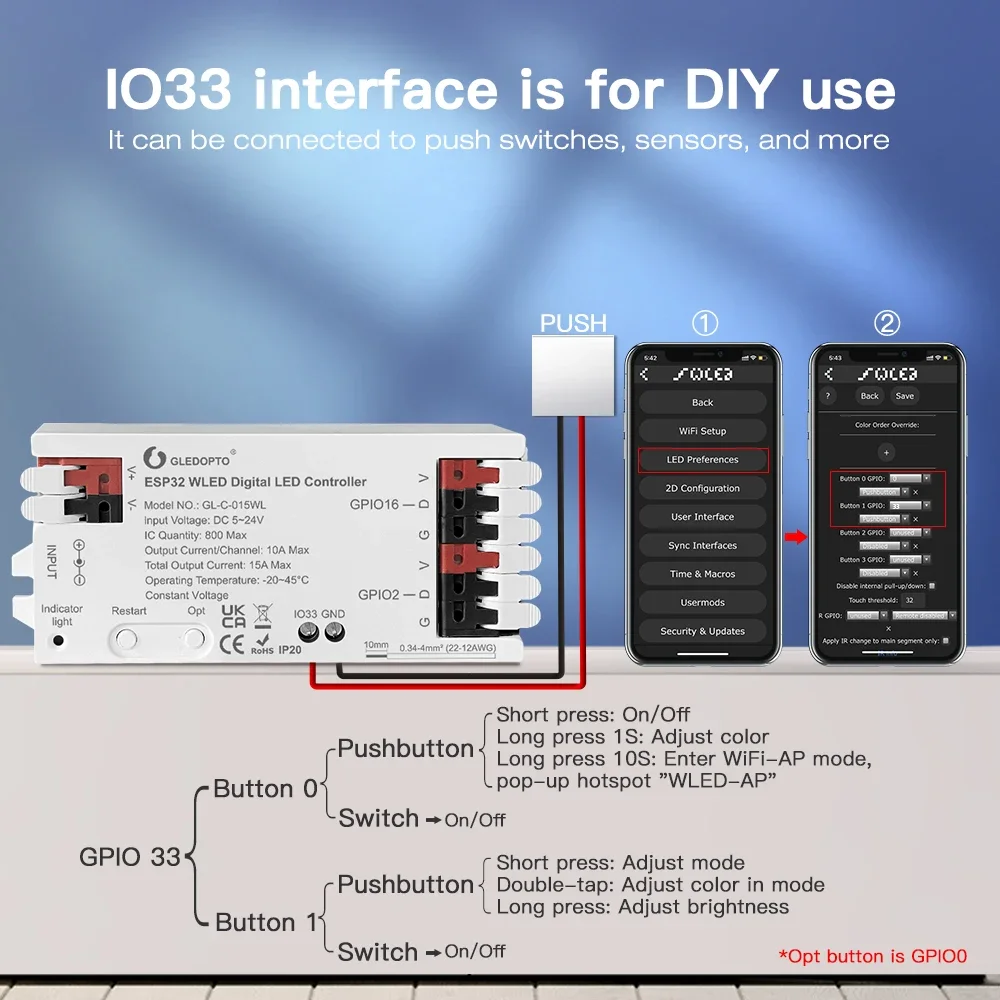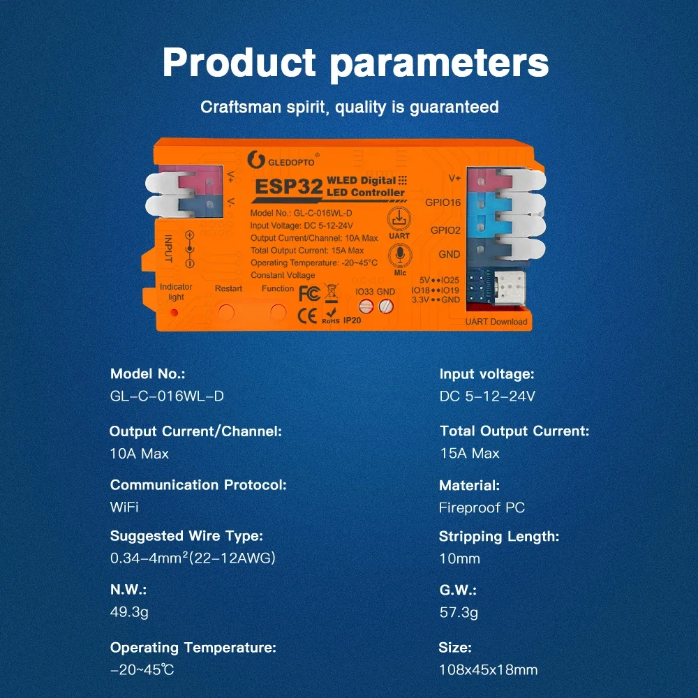 Potente chip ESP32, funcionamiento suave: Equipado con un chip ESP32 de alto rendimiento, este controlador de tira LED de última generación garantiza una funcionalidad perfecta.Se conecta fácilmente a la aplicación WLED a través de Wi-Fi, evitando la necesidad de una puerta de enlace, ofreciendo un control inteligente intuitivo y una experiencia de usuario sin complicaciones.