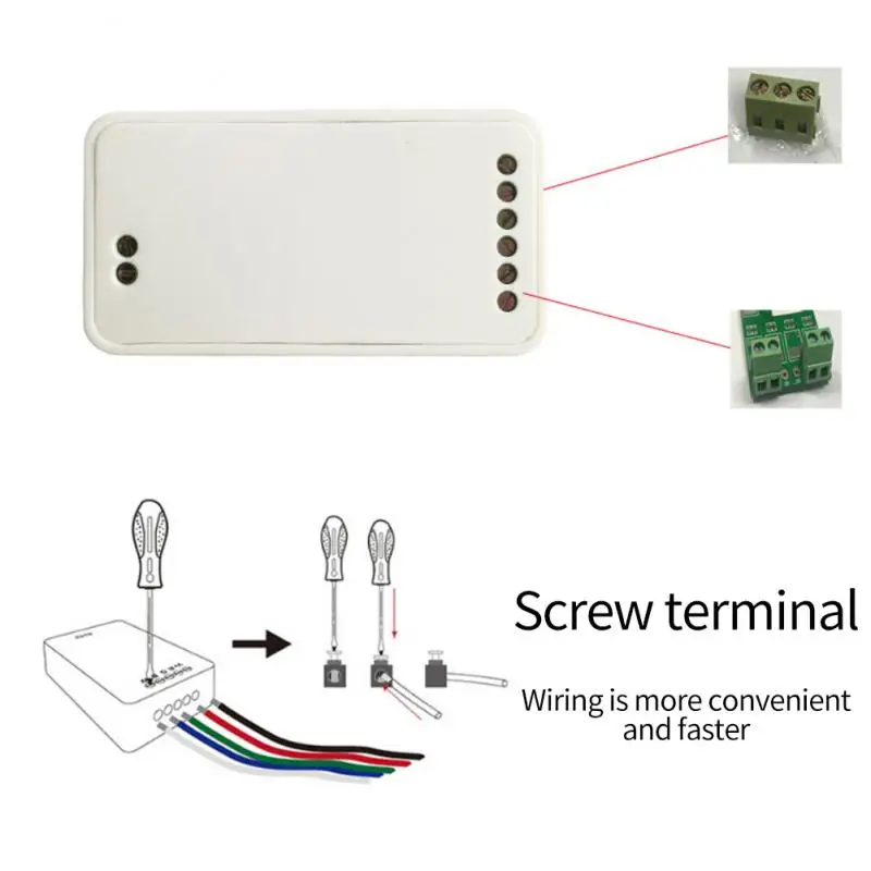 Este mini controlador de tira de luz wifi es fácil de usar y transportar por su pequeño tamaño y peso ligero. Puede dejar que su vida se vuelva vívida y colorida con él después de conectar el controlador y la puerta de enlace. Es perfecto para productos LED, como tiras de luz, caja de iluminación, etc. Espero que tenga una alegría infinita de la combinación de luz y música.