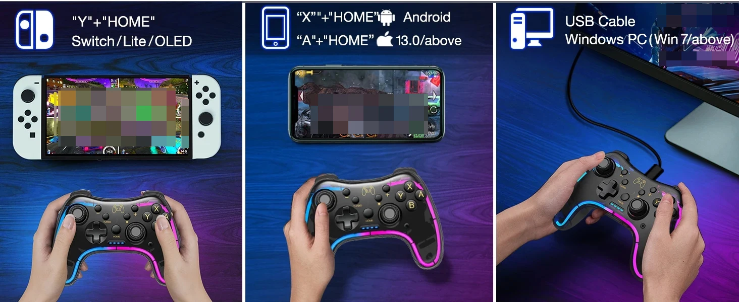 【FUERTE COMPATIBILIDAD】 El controlador de interruptor es totalmente compatible con los controladores Switch/Lite/OLED.Además, el control remoto Switch admite juegos iOS MFi, modelo Android HID y Windows 7/8/10.Puede conectarse en modo Bluetooth estable o cableado.Al poseer este controlador Switch Pro, tendrá acceso a una gama más amplia de juegos.(Tenga en cuenta que solo se admite conexión por cable USB para juegos de PC)
